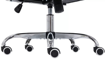 Der Bürostuhl Bernice überzeugt nicht nur durch sein modernes Erscheinungsbild, auch in puncto Komfort macht er niemandem etwas vor. Die hochwertige Polsterung und die pflegeleichte Polsterung, beide aus Kunstleder und Stoff, sorgen dafür, dass Sie stundenlang bequem sitzen. Zudem ist die Sitzhöhe stufenlos verstellbar, was ein ergonomisches Sitzen garantiert. Darüber hinaus ist der Bürostuhl mit einer Wippmechanik ausgestattet, die für mehr Bewegungsfreiheit sorgt. Stabilität wird durch das Metallgestell mit Chromoberfläche gewährleistet. Dank der fünf leichtgängigen Rollen rollen Sie leicht und locker über den Boden – egal ob auf Hartböden oder Teppichen. Das elegante Chromgestell und die stabilen, geschwungenen Armlehnen verleihen dem Ganzen das gewisse Extra und runden das Design ab.