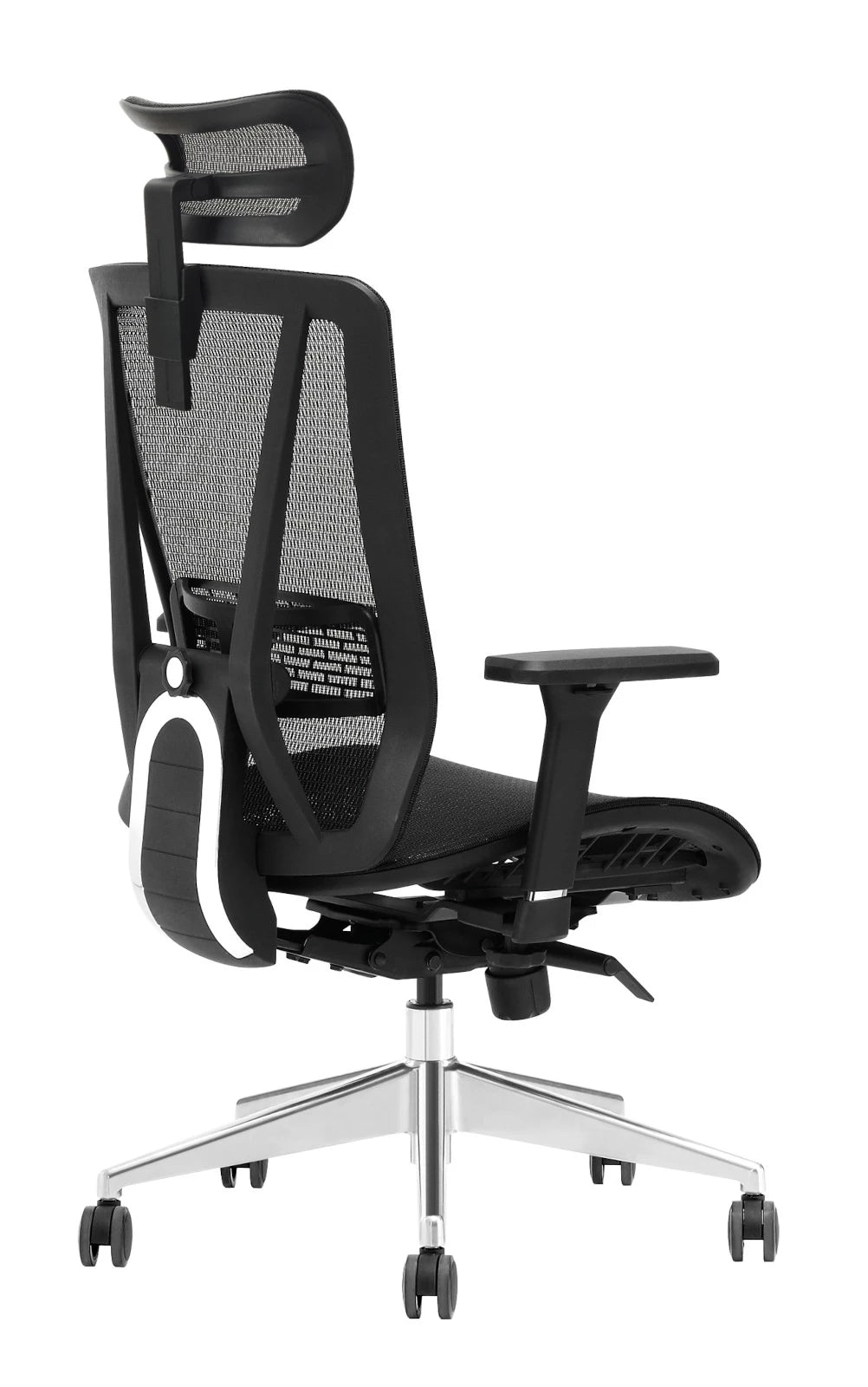 Die Kopfstütze ist in Höhe und Winkel verstellbar, sodass sie sich optimal an Ihren Körper anpasst. In die Rückenlehne ist eine Lordosenstütze integriert, die zudem höhenverstellbar ist, um den unteren Rücken zu entlasten. Die Armlehnen sind in vier Dimensionen verstellbar: Breite, Höhe, nach vorne und hinten und auch im Winkel.