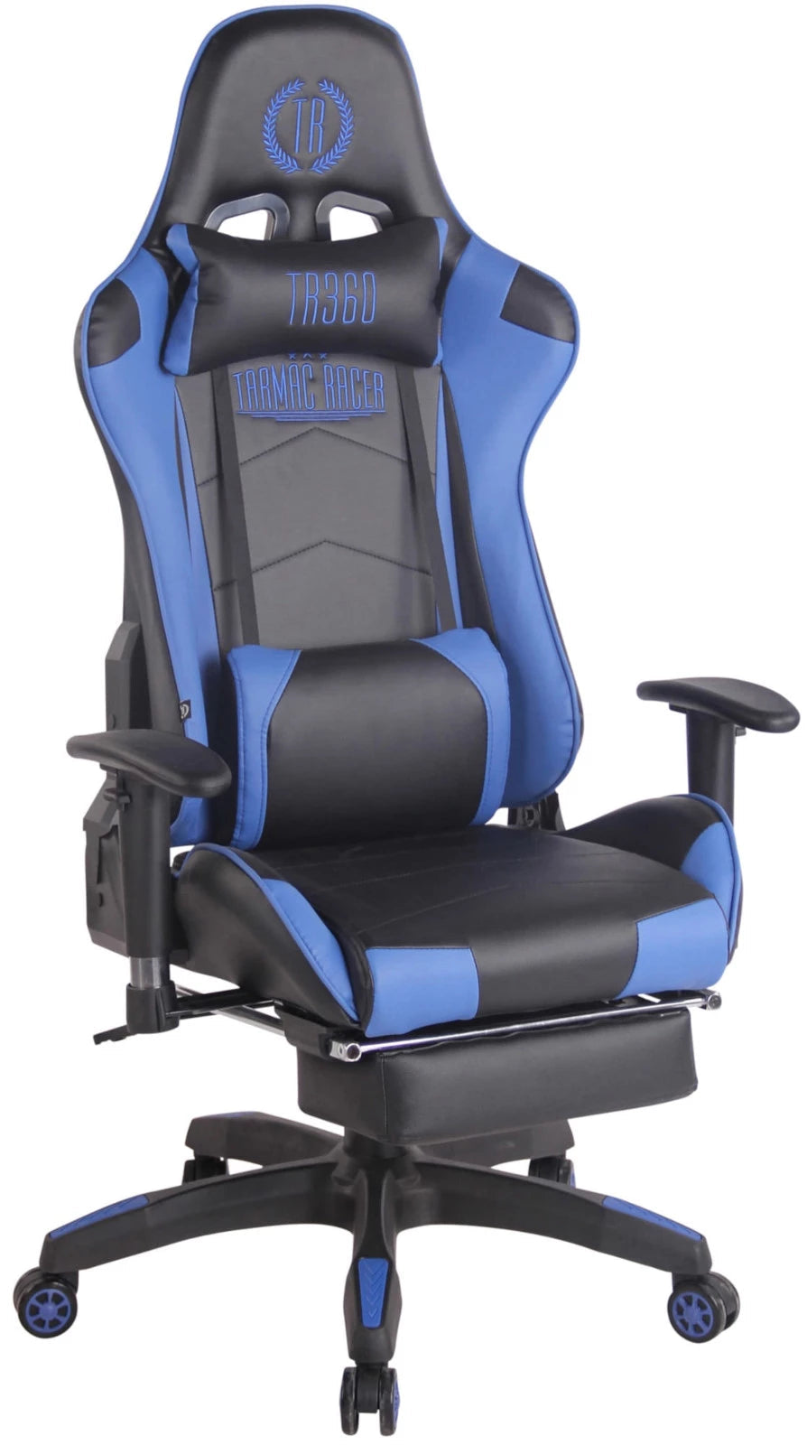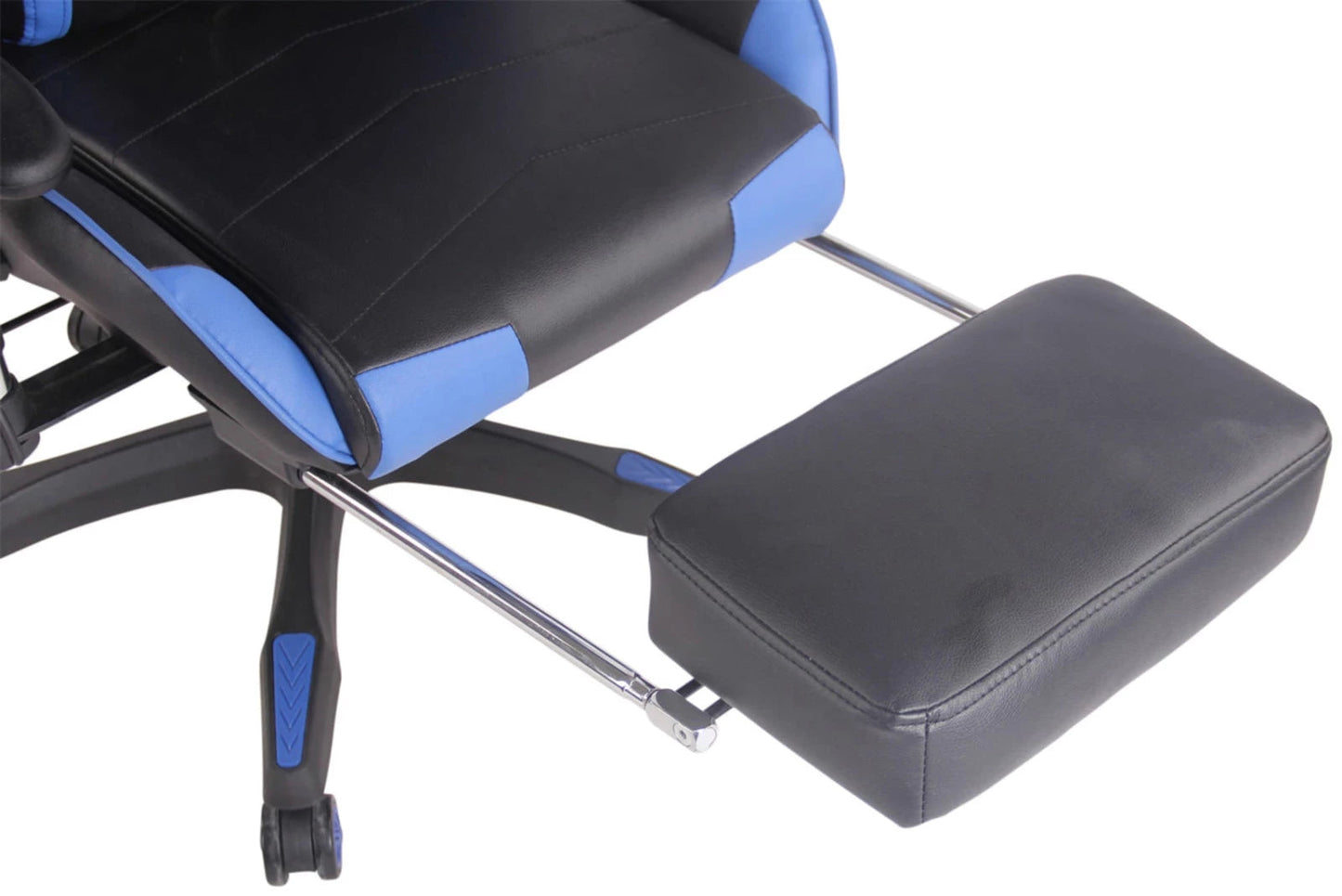 In And OutdoorMatch Bürostuhl Delilah - Schwarz und Blau - Fußstütze - Kunstleder - Hochwertige Polsterung - Exklusiver Bürostuhl - Sportlicher Look