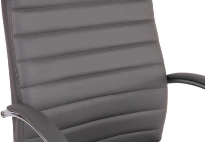 Dieser Delta-Chefsessel überzeugt nicht nur durch sein elegantes Aussehen, sondern ist auch in puncto Komfort und Langlebigkeit unschlagbar. Die gute Füllung und der pflegeleichte Bezug mit stilvollen Ziernähten sorgen für ein angenehmes Sitzgefühl, auch wenn Sie längere Zeit dort sitzen. Dank der stufenlos verstellbaren Sitzhöhe garantiert der Bürostuhl jederzeit ergonomisches Sitzen. Darüber hinaus sorgt der eingebaute Wippmechanismus für mehr Bewegungsfreiheit. Er steht sicher auf fünf leichtgängigen Rollen und einem Metallgestell in Chromoptik.