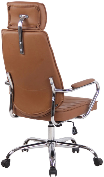 Der Chefsessel Denis ist ein Bürostuhl mit sehr hochwertiger Polsterung und moderner Optik. Die Kunstlederpolsterung sieht nicht nur schön aus, sondern ist auch besonders robust und pflegeleicht. Ein stabiles Metallgestell in Chromoptik sorgt zudem für einen sicheren Stand. Dank einer verstellbaren Sitzhöhe ist zudem ergonomisches Sitzen gewährleistet. Ein eingebauter Wippmechanismus sorgt für mehr Bewegungsfreiheit. Der Drehstuhl Denis steht stabil auf fünf leichtgängigen Rollen. Ob Hartboden oder Teppichboden, Sie können immer leicht und locker über den Boden rollen.