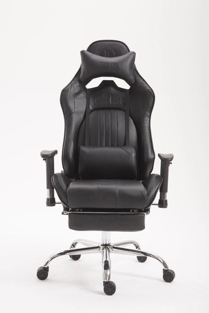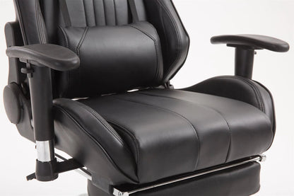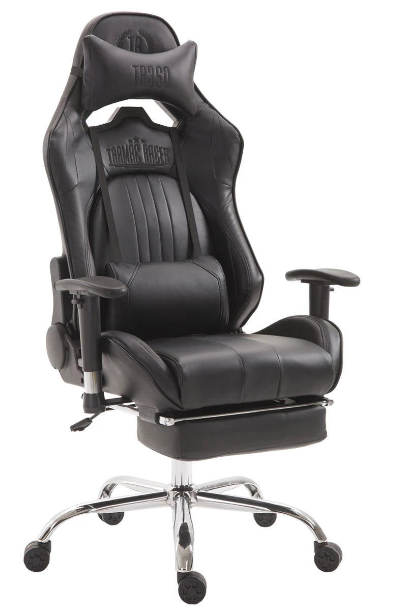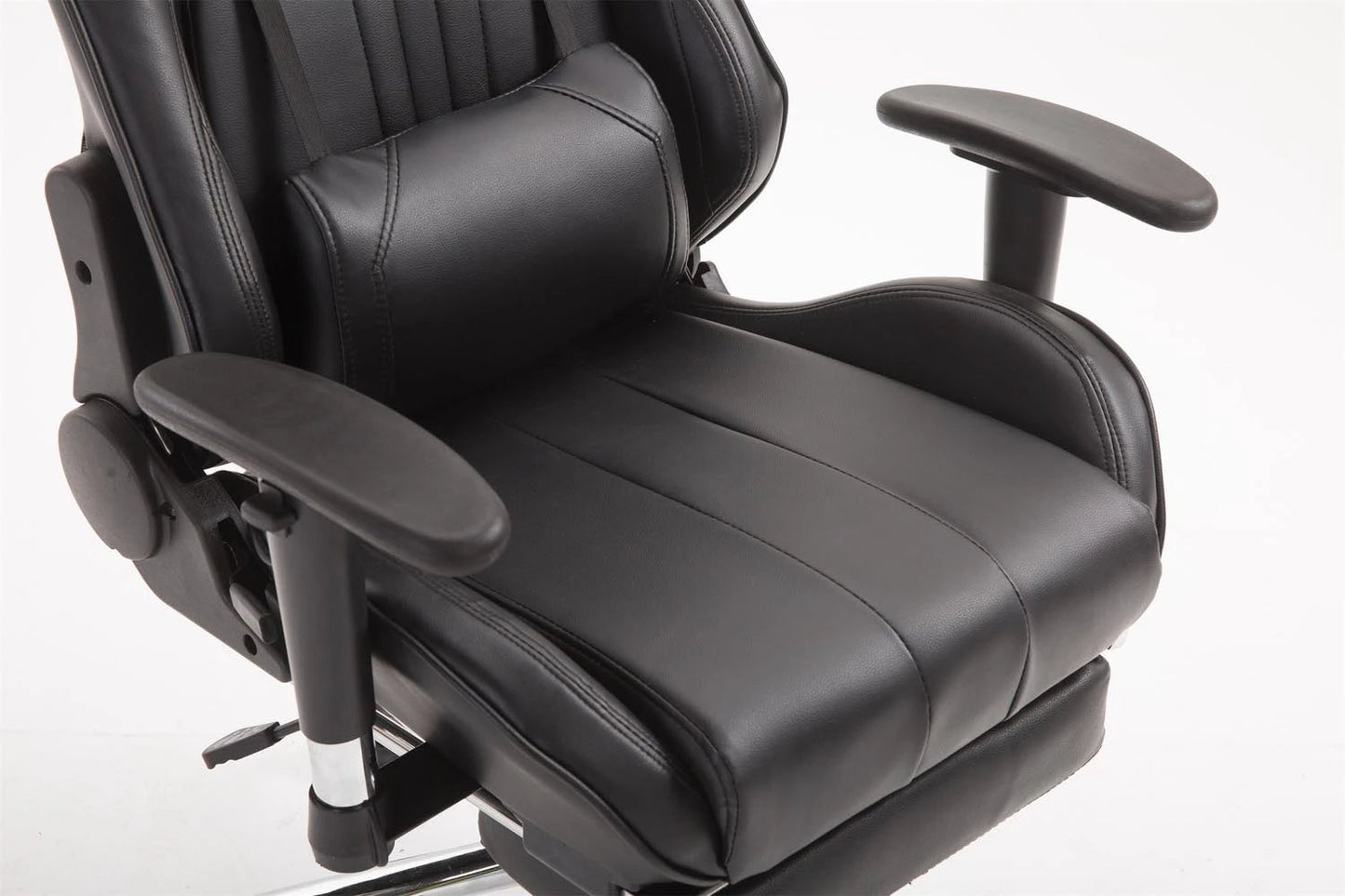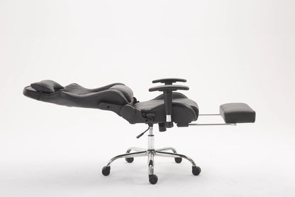 Der Bürostuhl Earleen im attraktiven, sportlichen Design vereint Funktionalität und Komfort auf optimale Weise. Der angenehm gepolsterte Sitz mit Kunstlederpolsterung und die beiden abnehmbaren Nacken- und Rückenkissen sorgen nicht nur für eine gesunde Sitzposition, sondern auch für langfristigen Komfort. Höhenverstellbare, schwenkbare Armlehnen und individuelle Einstellmöglichkeiten garantieren ein angenehmes Sitzgefühl, das auch bei längerer Nutzung erhalten bleibt. Für eine angenehme Pause zwischendurch sorgt auch die leicht verstellbare Rückenlehne, denn sogar eine horizontale Position ist möglich. Der Bürostuhl steht sicher auf fünf leichtgängigen Rollen und einem Metallgestell in Chromoptik. Ob Hartboden oder Teppich, Sie können immer leicht und locker über den Boden rollen.