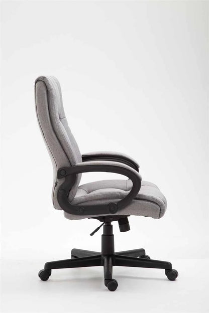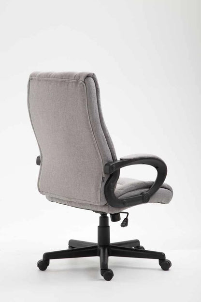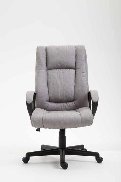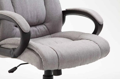Der Chefsessel Eva überzeugt mit sehr hochwertiger Polsterung und Stoffpolsterung im Sitz- und Rückenbereich, sowie an den Armlehnen. Auch in puncto Komfort lässt der Bürostuhl keine Wünsche offen, denn eine bequeme Sitzposition wird durch die ergonomisch geformte Rückenlehne und die stufenlos verstellbare Sitzhöhe garantiert, die mit dem Hebel unter der Sitzfläche bedient werden kann. Bewegungsfreiheit wird durch den eingebauten Kippmechanismus ermöglicht. Das Gestell besteht aus Kunststoff und steht stabil auf fünf Leichtlaufrollen, sodass Sie immer leicht und locker über den Boden rollen können – egal ob hart oder mit Teppich ausgelegt.