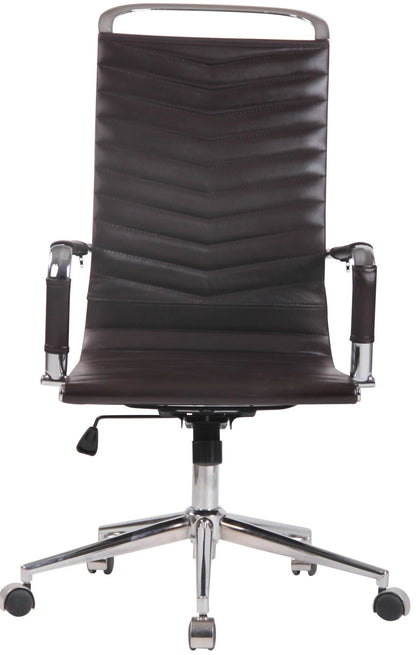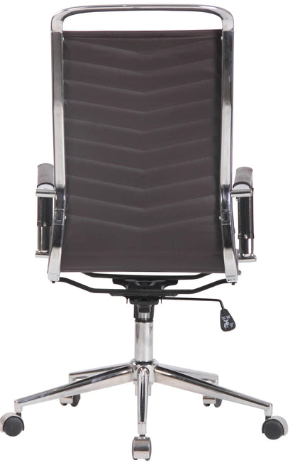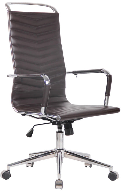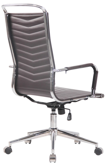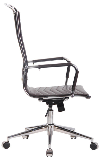 Dieser Everett-Bürostuhl überzeugt nicht nur durch sein modernes Erscheinungsbild, auch in puncto Komfort ist er unschlagbar. Der Drehstuhl ist mit Kunstleder- oder Echtlederpolsterung erhältlich und besonders pflegeleicht. Zudem ist die Sitzhöhe stufenlos verstellbar, was ein ergonomisches Sitzen garantiert. Der Bürostuhl verfügt außerdem über einen Wippmechanismus, der für mehr Bewegungsfreiheit sorgt. Stabilität wird durch das Metallgestell in Chromoptik gewährleistet. Dank der fünf leichtgängigen Rollen rollen Sie sowohl auf Hartböden als auch auf Teppichböden leicht und locker über den Boden. Das elegante Chromgestell und die stabilen, geschwungenen Armlehnen verleihen dem Ganzen das gewisse Extra und runden das Design ab.
