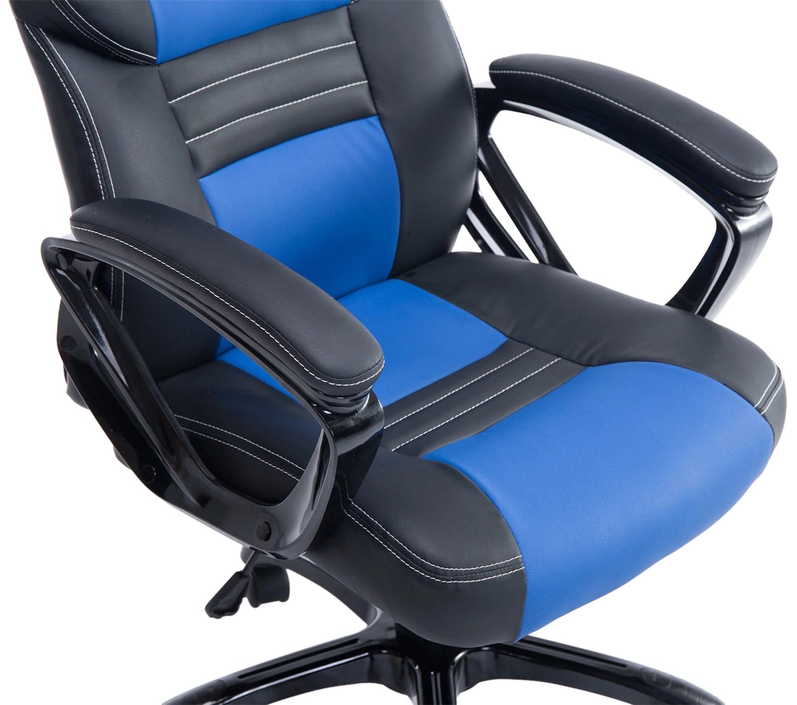 In And OutdoorMatch Bürostuhl Evie - Schwarz und Blau - Kunstleder - Hochwertige Polsterung - Exklusiver Bürostuhl - Sportlicher Look
