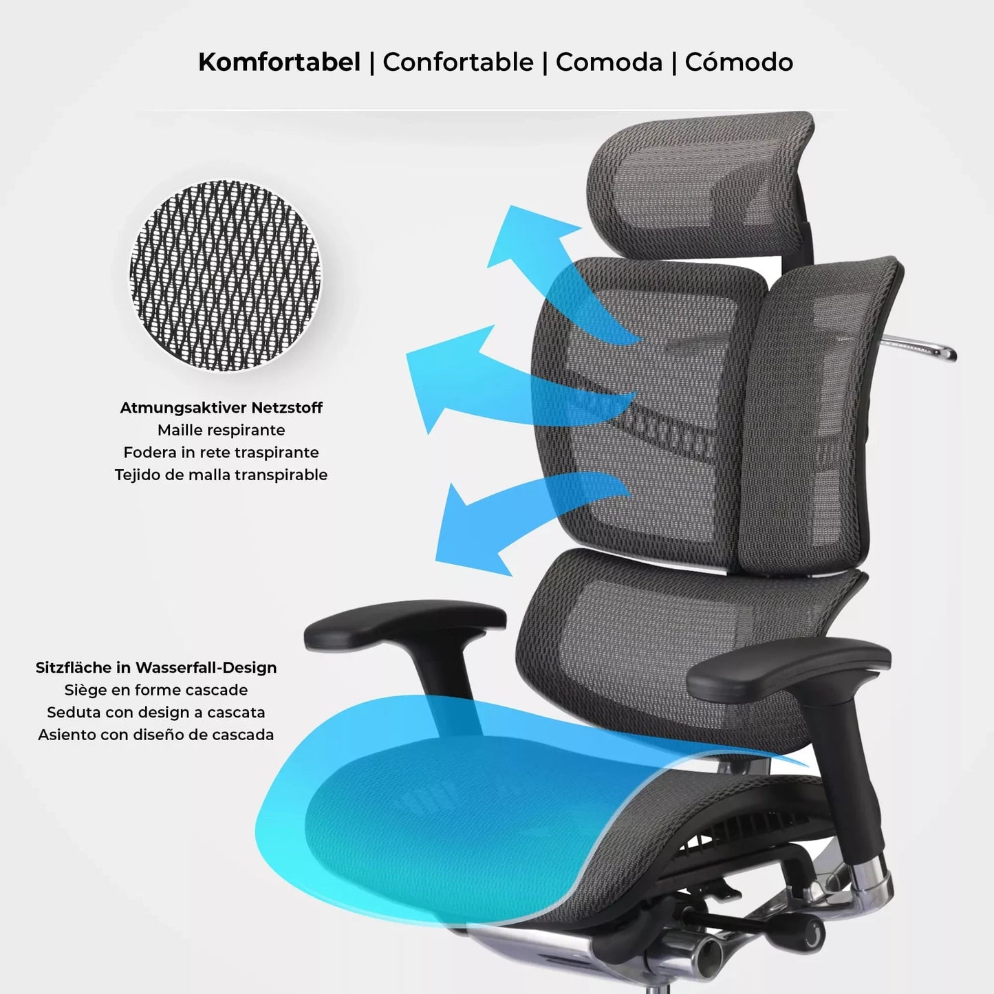 Der ergonomische Bürostuhl Fabiola ist ein Bürostuhl der Spitzenklasse. Dank seiner außergewöhnlichen Ergonomie ist dieser Drehstuhl auch ideal für Langzeitarbeiten geeignet.