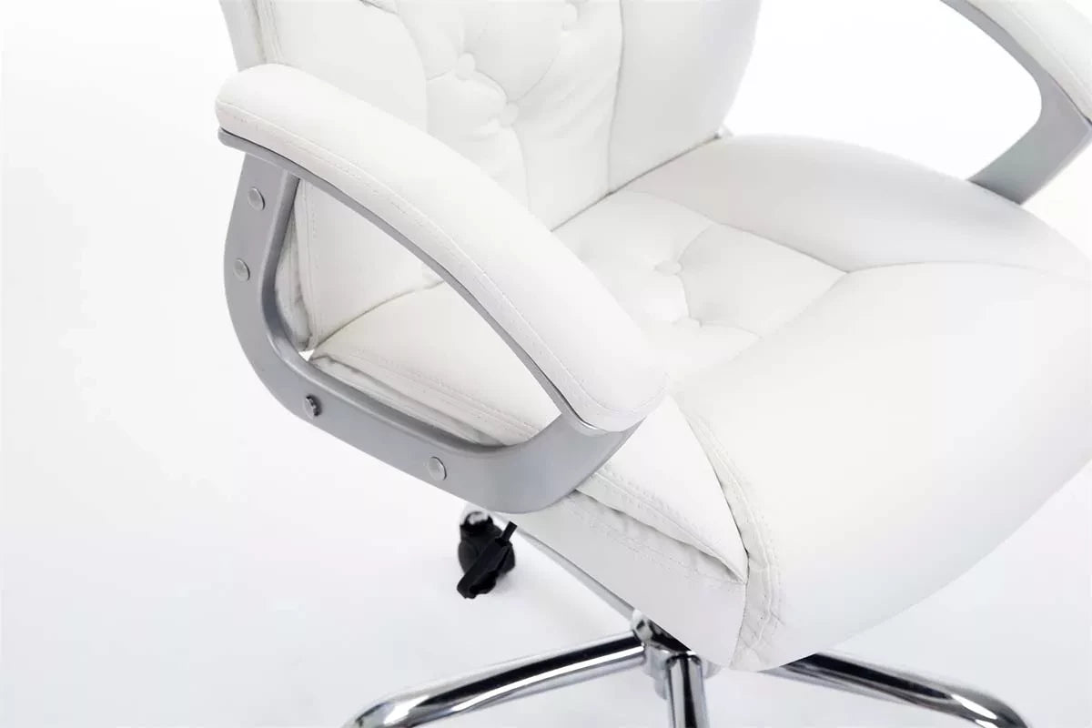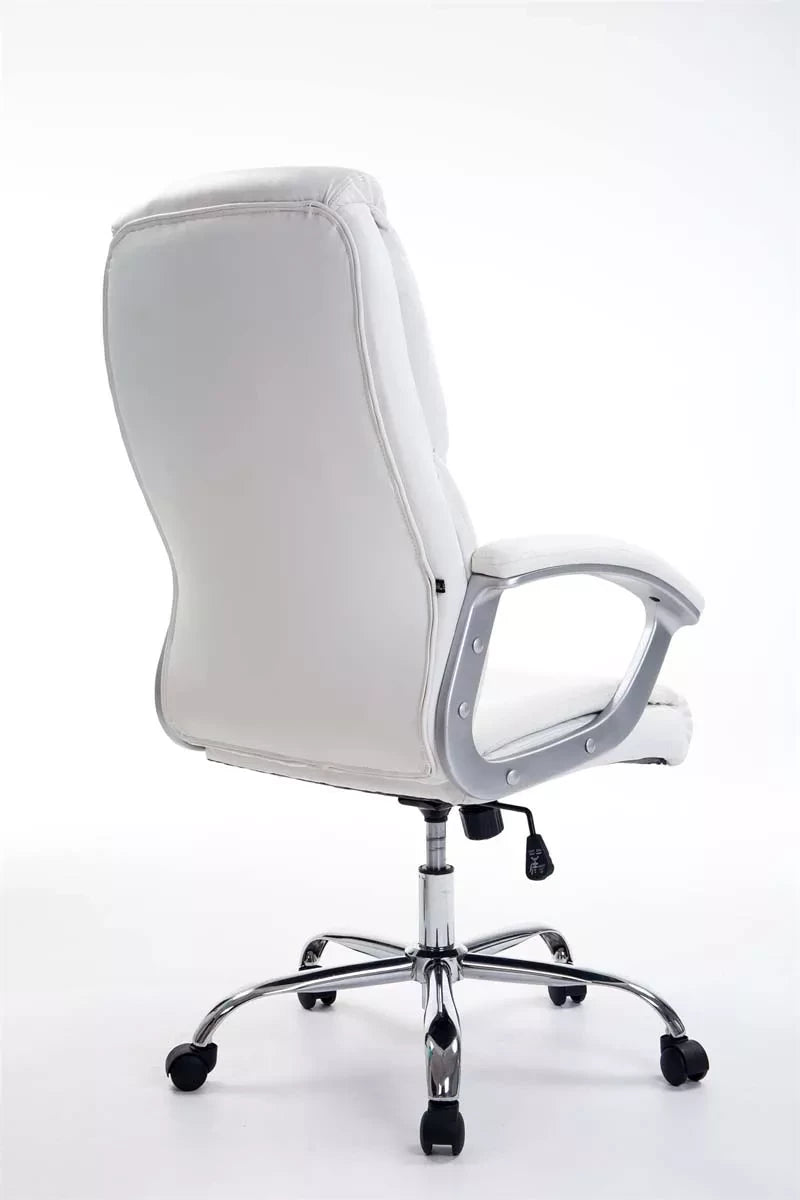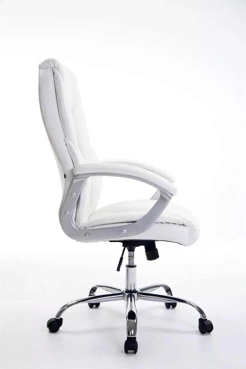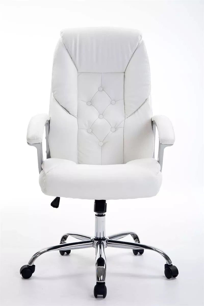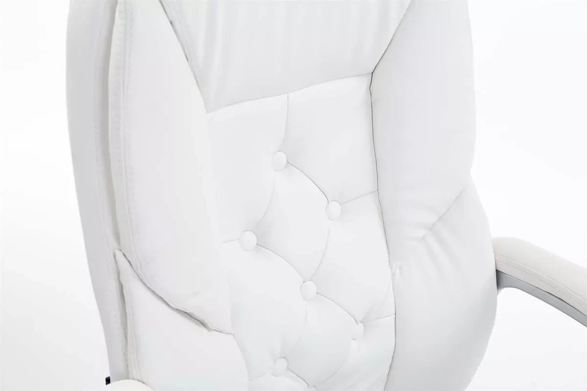 Dieser Bürostuhl ist ideal für große und schwere Menschen, denn die Gasfeder ist für den Dauereinsatz bis 210 kg ausgelegt. Der Chefsessel ist ein exklusiver Bürostuhl mit sehr hochwertiger Polsterung und Kunstleder. Kunstlederbezüge haben den Vorteil, dass sie elastisch sind und sich bei Entlastung wieder aufrichten. Das sieht nicht nur schöner aus, sondern verlängert auch die Lebensdauer des Sitzbezugs. Das Gestell besteht aus Metall in Chromoptik und ist daher sehr stabil. Dank der verstellbaren Sitzhöhe und bequem gepolsterten Armlehnen ist ergonomisches Sitzen gewährleistet. Die Sitzhöhe ist mit dem Hebel unter dem Sitz stufenlos verstellbar. Die stilvollen Zierknöpfe an der Rückenlehne und am Sitz tragen zum eleganten Design bei. Der eingebaute Wippmechanismus sorgt für mehr Bewegungsfreiheit. Der Bürostuhl steht sicher auf fünf leichtgängigen Rollen.