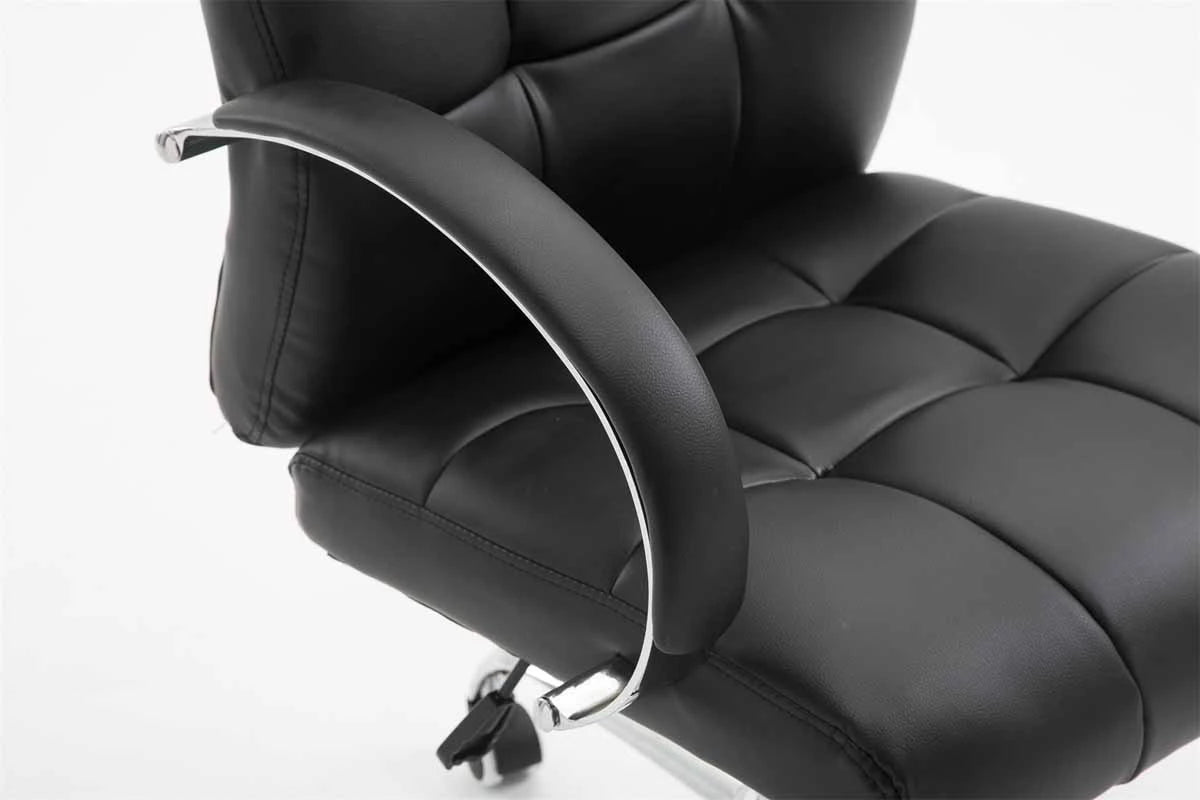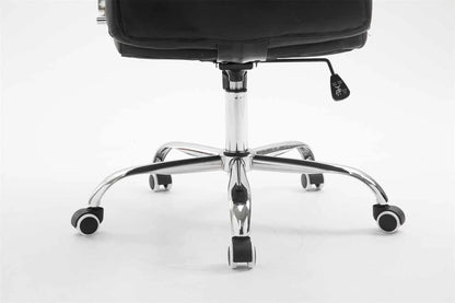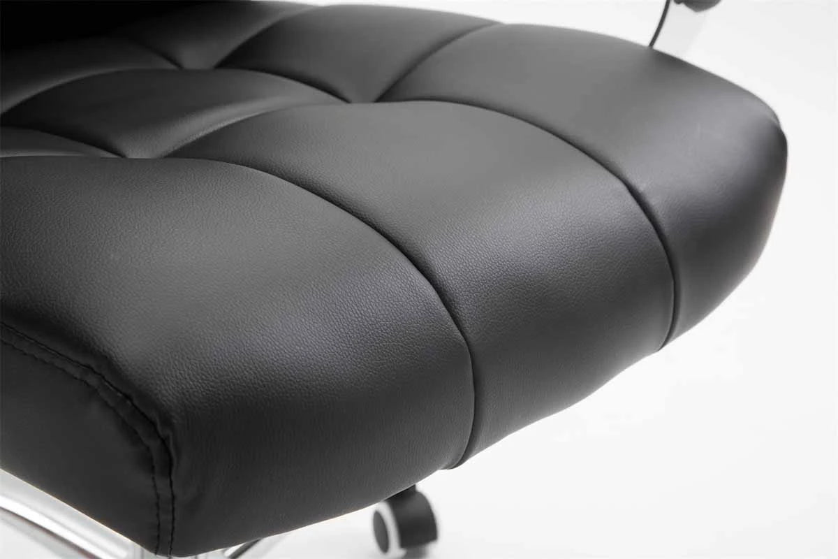 Der Chefsessel Gordy ist ein äußerst hochwertiger Bürostuhl mit sehr hochwertiger Polsterung und Kunstlederpolsterung. Kunstlederbezüge haben den Vorteil, dass sie elastisch sind und sich bei Entlastung wieder geschmeidig dehnen. Das sieht nicht nur schöner aus, sondern verlängert auch die Lebensdauer des Sitzbezugs. Darüber hinaus sind Kunstlederbezüge atmungsaktiv, was insbesondere bei hohen Temperaturen von Vorteil ist. Der Rahmen ist aus Metall und sehr stabil. Der Stuhl steht sicher auf fünf leicht laufenden Rollen. Die Sitzhöhe ist stufenlos verstellbar. Der Stuhl verfügt über einen eingebauten Wippmechanismus für mehr Bewegungsfreiheit. Der Bürostuhl verfügt über sehr robuste Rollen.
