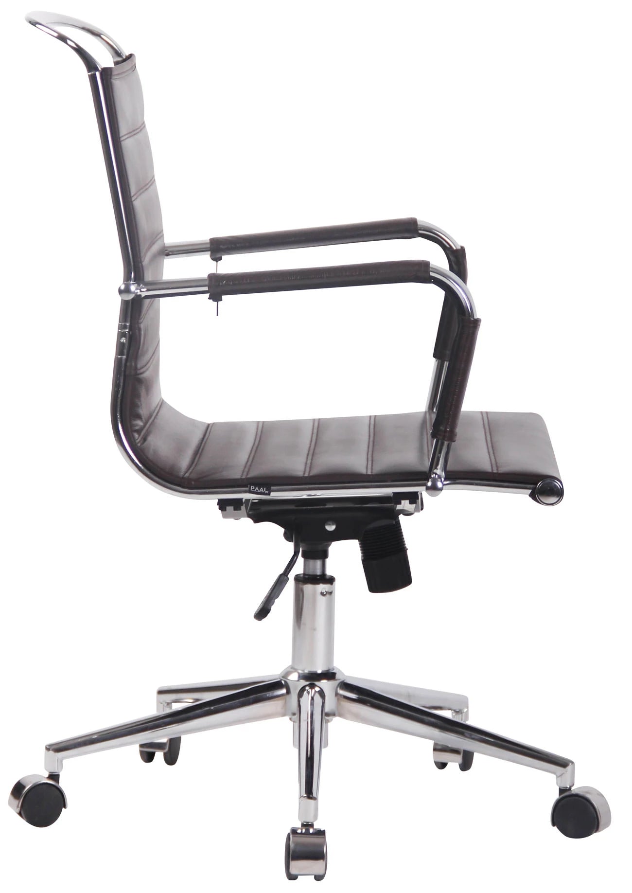 Dieser Hennie-Bürostuhl überzeugt nicht nur durch sein modernes Erscheinungsbild, auch in puncto Komfort macht ihm niemand etwas vor. Der Drehstuhl ist mit Kunstleder- oder Echtlederpolsterung erhältlich und besonders pflegeleicht. Darüber hinaus ist die Sitzhöhe stufenlos verstellbar und garantiert eine ergonomische Sitzposition. Darüber hinaus ist der Bürostuhl mit einer Wippmechanik ausgestattet, die für mehr Bewegungsfreiheit sorgt. Stabilität wird durch das Metallgestell in Chromoptik gewährleistet. Dank der fünf leichtgängigen Rollen rollen Sie leicht und locker über den Boden – sowohl auf Hartböden als auch auf Teppichen. Das elegante Chromgestell und die stabilen, geschwungenen Armlehnen verleihen dem Ganzen das gewisse Extra und runden das Design ab.