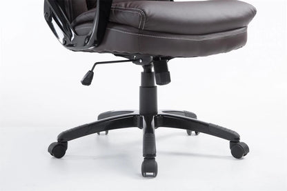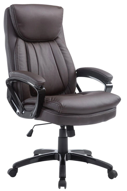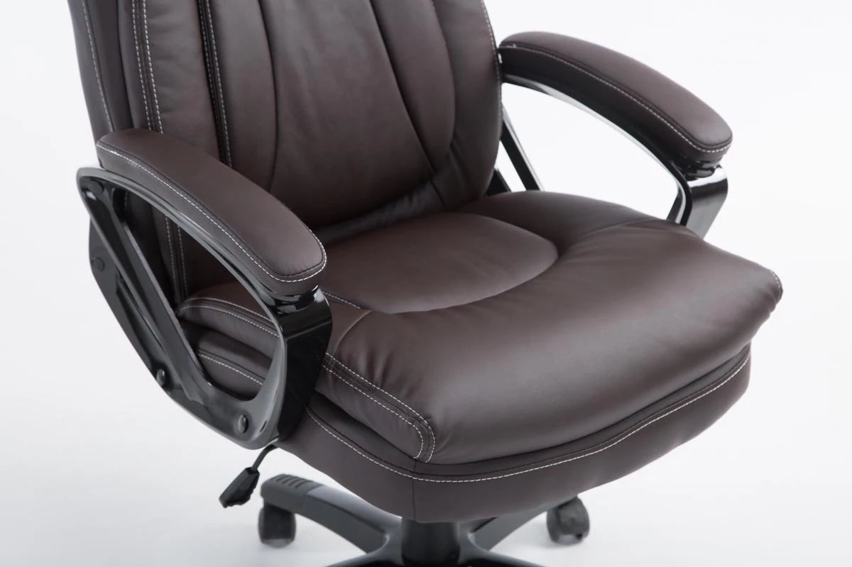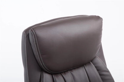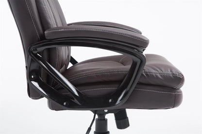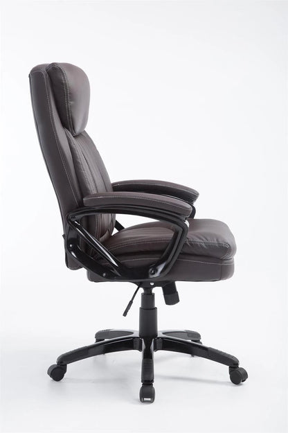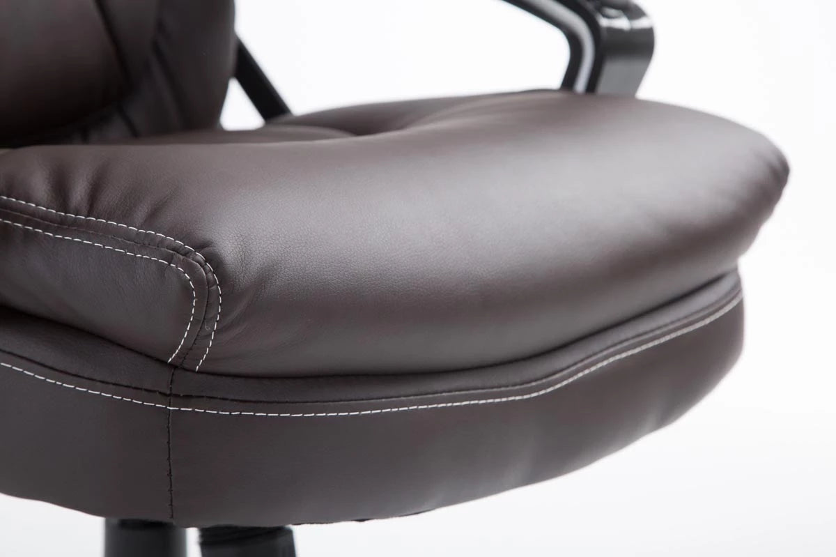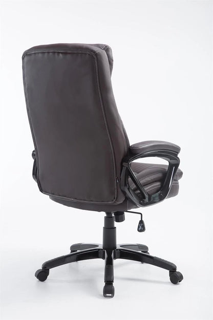 Der moderne Komfort-Chefsessel Idonea mit Kunstlederpolsterung bietet den Vorteil, dass er besonders pflegeleicht ist. Kunstleder sieht nicht nur schön aus, sondern ist auch elastisch und dehnt sich bei Entlastung wieder geschmeidig, was eine lange Lebensdauer des Sitzbezugs garantiert. Die extra hohe Rückenlehne mit Formpolsterung im Kopfteil und die weiche Polsterung an den Armlehnen ermöglichen ein angenehmes Arbeiten. Die stufenlos verstellbare Sitzhöhe und der individuell arretierbare Wippmechanismus sorgen für mehr Bewegungsfreiheit. Das Gestell des Drehstuhls besteht aus stabilem Kunststoff und steht auf fünf robusten Kunststoffrädern. Ob Hartboden oder Teppichboden, Sie können immer leicht und locker über den Boden rollen. Der Bürostuhl wird zerlegt geliefert.