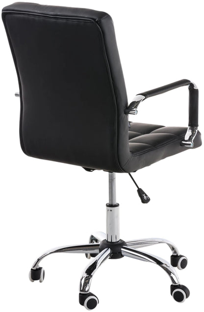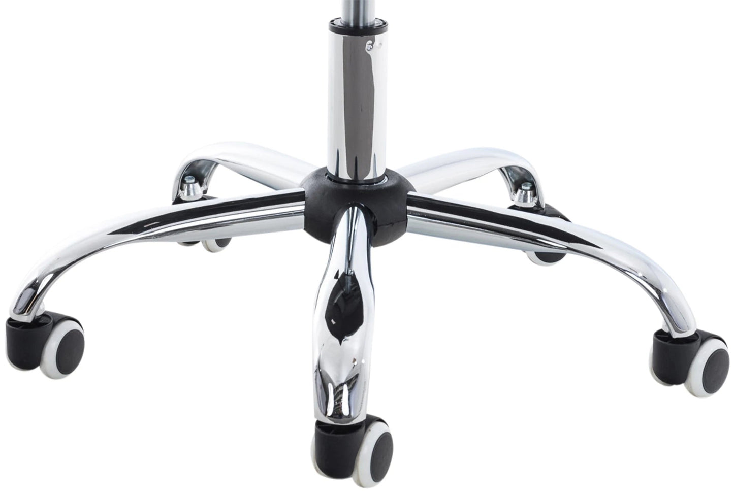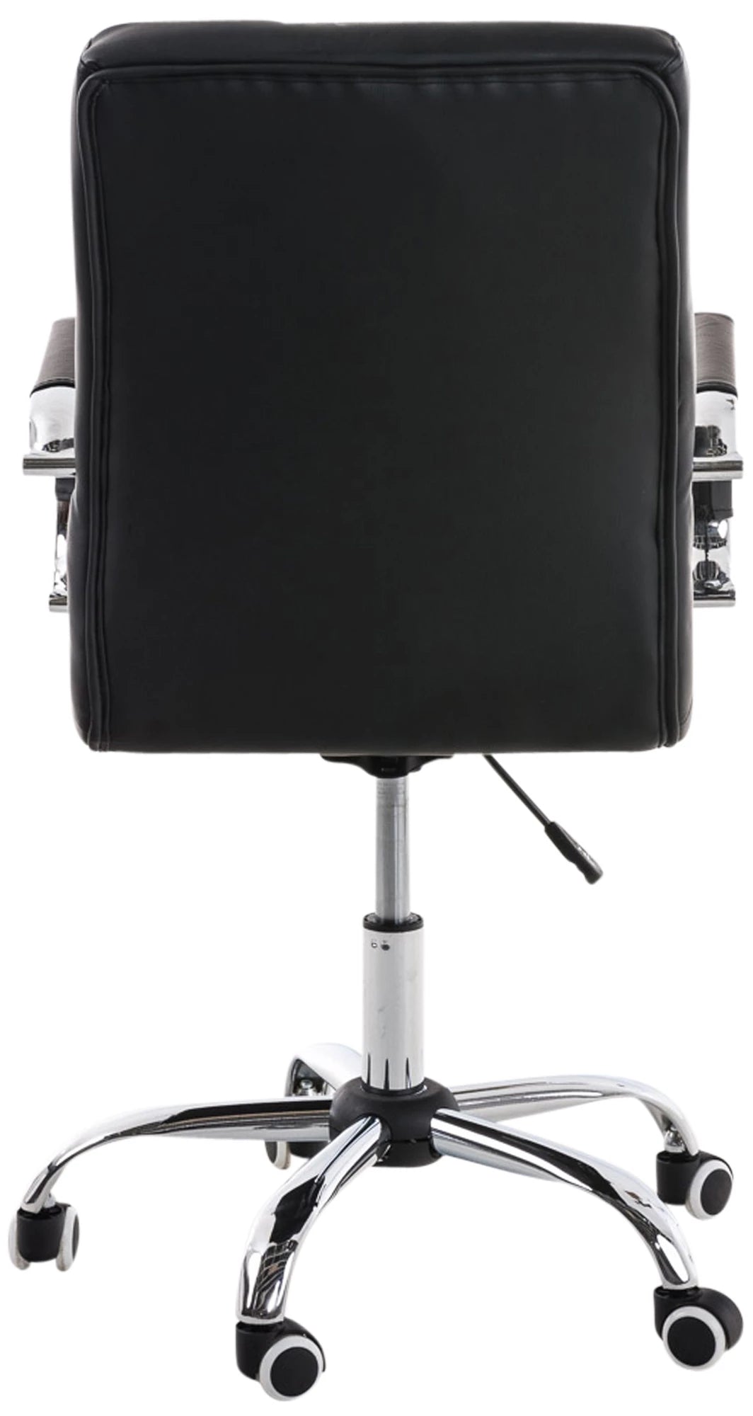 Der Bürostuhl Joi überzeugt durch sein modernes Design und bietet dank der Rückenlehne hohen Komfort beim Arbeiten. Dieser exklusive Joi-Bürostuhl verfügt über eine sehr hochwertige Füllung und Kunstlederpolsterung. Kunstlederbezüge haben den Vorteil, dass sie elastisch sind und sich bei Entlastung wieder geschmeidig dehnen. Das sieht nicht nur schöner aus, sondern verlängert auch die Lebensdauer des Sitzbezugs. Das Gestell besteht aus Metall in Chromoptik und ist daher sehr stabil. Dank der verstellbaren Sitzhöhe ist ergonomisches Sitzen gewährleistet. Die Sitzhöhe ist über den Hebel unter dem Sitz stufenlos verstellbar. Der Bürostuhl steht sicher auf fünf leichtgängigen Rollen. Ob Hartboden oder Teppichboden, Sie können immer leicht und locker über den Boden rollen.