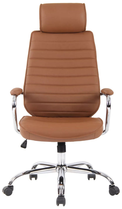 Der Chefsessel Junior ist ein Bürostuhl mit sehr hochwertiger Polsterung und moderner Optik. Die Echtlederpolsterung sieht nicht nur toll aus, sondern ist auch besonders robust und pflegeleicht. Ein stabiles Metallgestell in Chromoptik sorgt zudem für einen sicheren Stand. Die Sitzhöhe ist stufenlos verstellbar und garantiert ergonomisches Sitzen auch über Stunden hinweg. Der eingebaute Wippmechanismus sorgt zudem für mehr Bewegungsfreiheit. Der Drehstuhl Silvia steht stabil auf fünf leichtgängigen Rollen. Ob Hartboden oder Teppich, Sie rollen immer leicht und locker über den Boden.