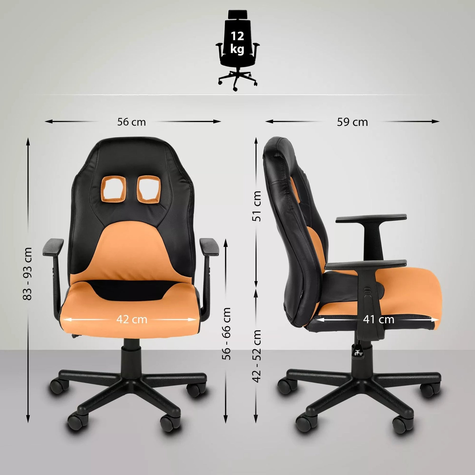 In And OutdoorMatch Kinderbürostuhl Julianne – Kunstleder – Orange – Auf Rollen – Ergonomischer Bürostuhl – Für Kinder – Gaming-Stuhl – Höhenverstellbar