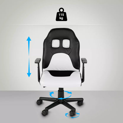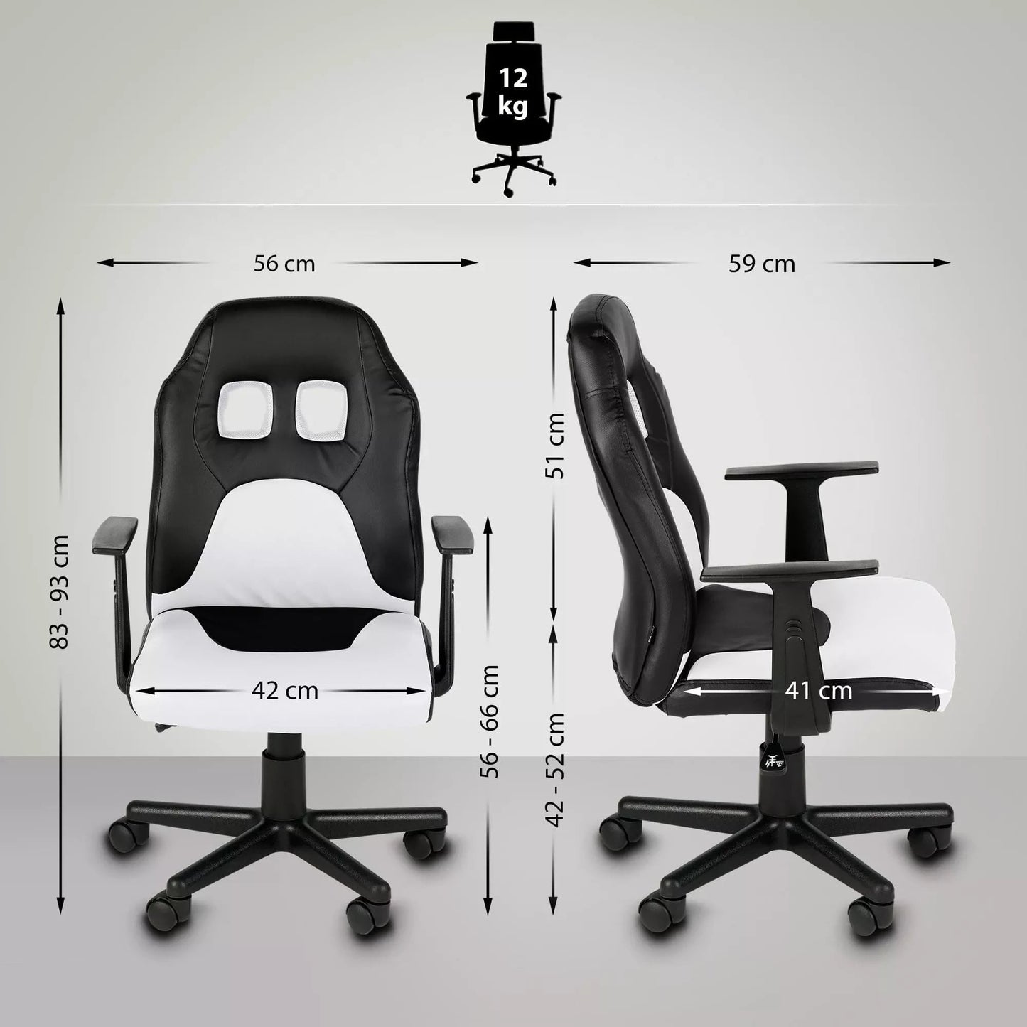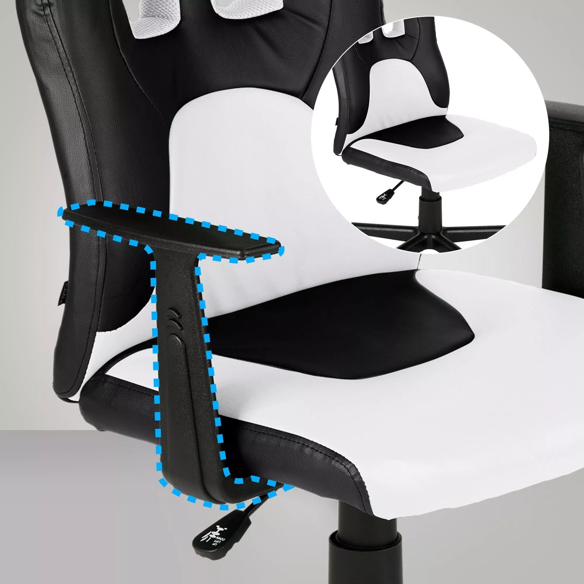 In And OutdoorMatch Bürostuhl Kinder Lempi – Kunstleder – Weiß – Auf Rollen – Ergonomischer Bürostuhl – Für Kinder – Gaming-Stuhl – Höhenverstellbar