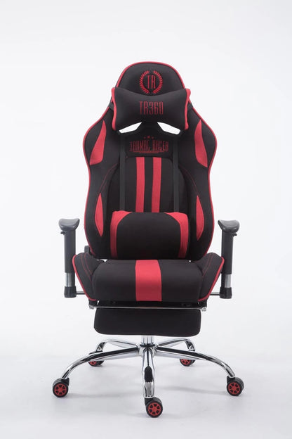 In And OutdoorMatch Bürostuhl Krystina - Schwarz und Rot - Stoff - Fußstütze - Hochwertige Polsterung - Exklusiver Bürostuhl - Luxuriöses Erscheinungsbild