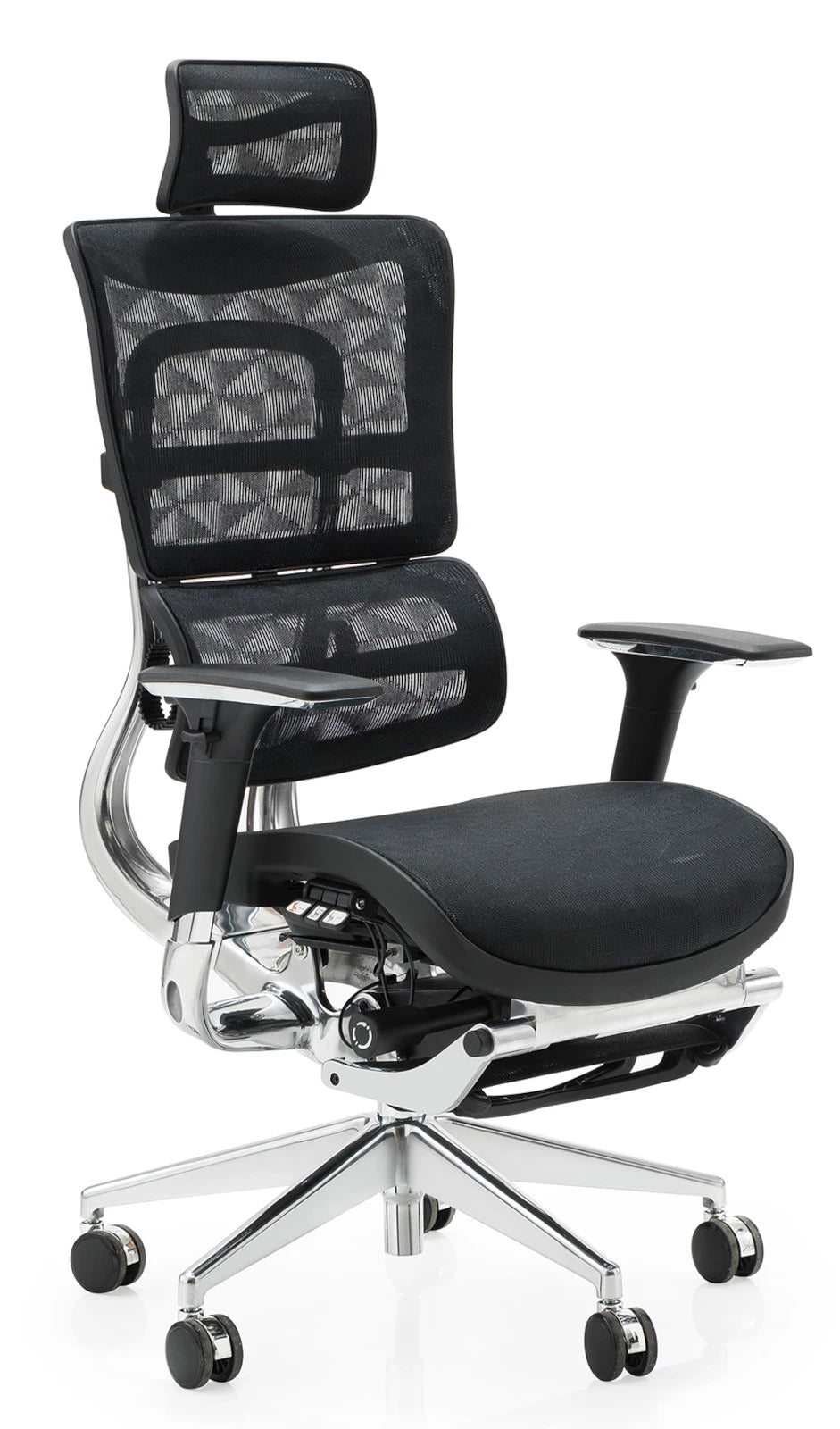 Für produktives und gesundes Arbeiten ist ein hoher Sitzkomfort besonders wichtig. Dieser Bürostuhl verfügt über viele verstellbare Elemente. Die Rückenlehne ist höhenverstellbar und neigbar. Sie können die Neigungsspannung nach Wunsch einstellen und die Rückenlehne ist auch arretierbar. Um den Sitz an Ihre Körpergröße anzupassen, lässt er sich nach vorne und hinten verschieben. Der Drehstuhl verfügt außerdem über eine integrierte Fußstütze, sodass Sie wunderbar entspannen können.