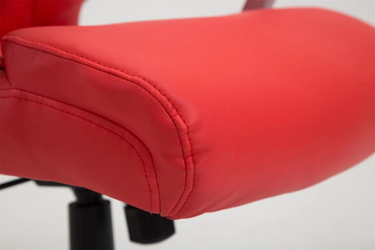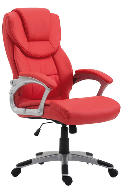 In puncto Komfort lässt dieser Stuhl keine Wünsche offen, denn die ergonomisch geformte Rückenlehne und die stufenlos verstellbare Sitzhöhe garantieren eine bequeme Sitzposition. Bewegungsfreiheit wird durch den eingebauten Kippmechanismus ermöglicht. Auch die hochwertige Füllung und der pflegeleichte Kunstlederbezug überzeugen durch ihre lange Lebensdauer. Der Bürostuhl steht sicher auf fünf leichtgängigen Rollen und einem Kunststoffgestell in Metalloptik. Ob Hart- oder Teppichboden, Sie können ihn immer leicht und locker über den Boden rollen.