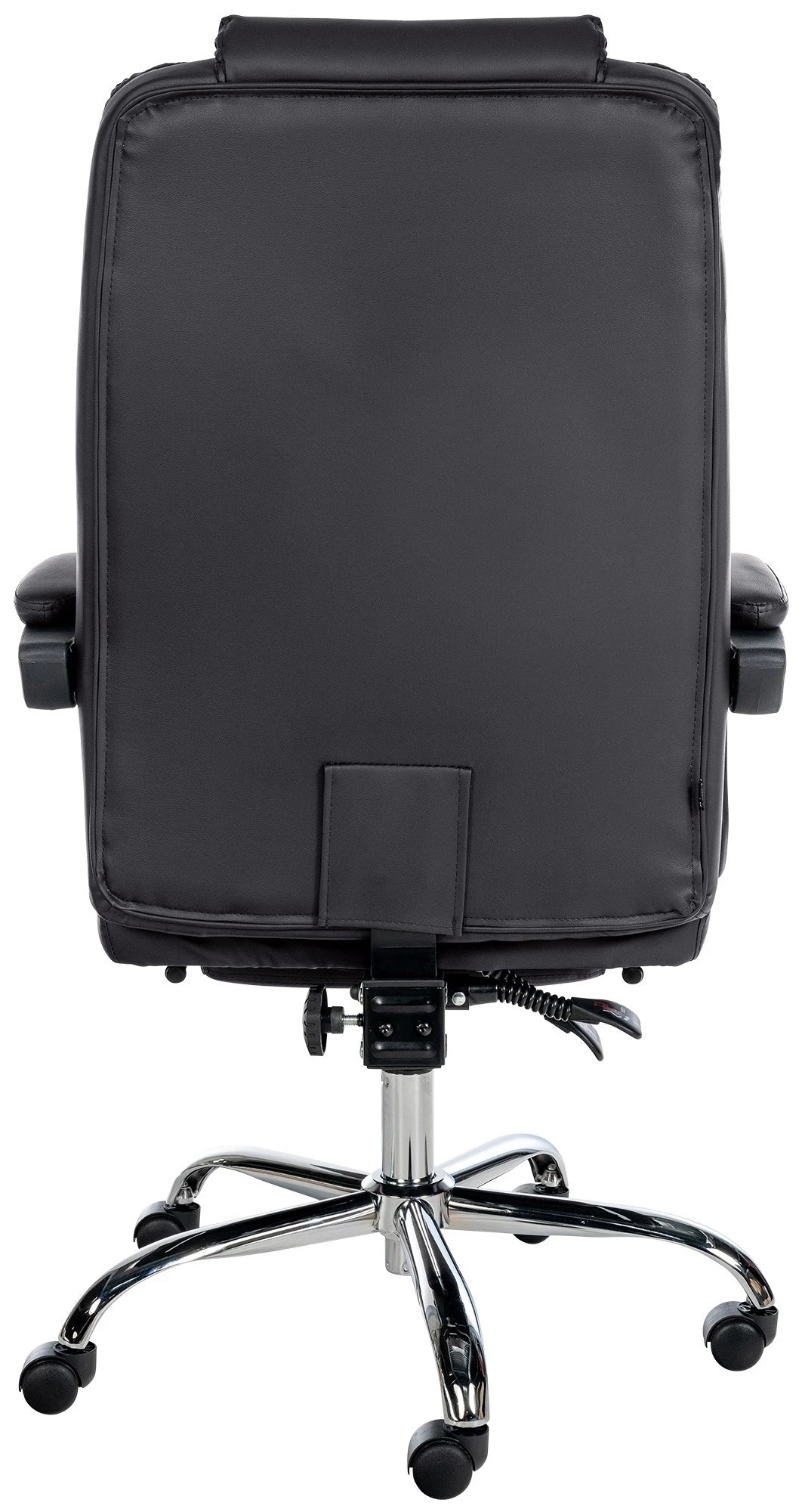 Dank der leicht verstellbaren Fußstütze und Rückenlehne können Sie sich entspannt zurücklehnen und gleichzeitig die Beine hochlegen. Der Bürostuhl ist stufenlos höhenverstellbar, sodass er genau an Ihre Körpergröße angepasst werden kann. Für mehr Bewegungsfreiheit lässt sich der Stuhl um 360 Grad um die eigene Achse drehen. Er steht sicher auf fünf leichtgängigen Rollen und einem Metallgestell in Chromoptik.