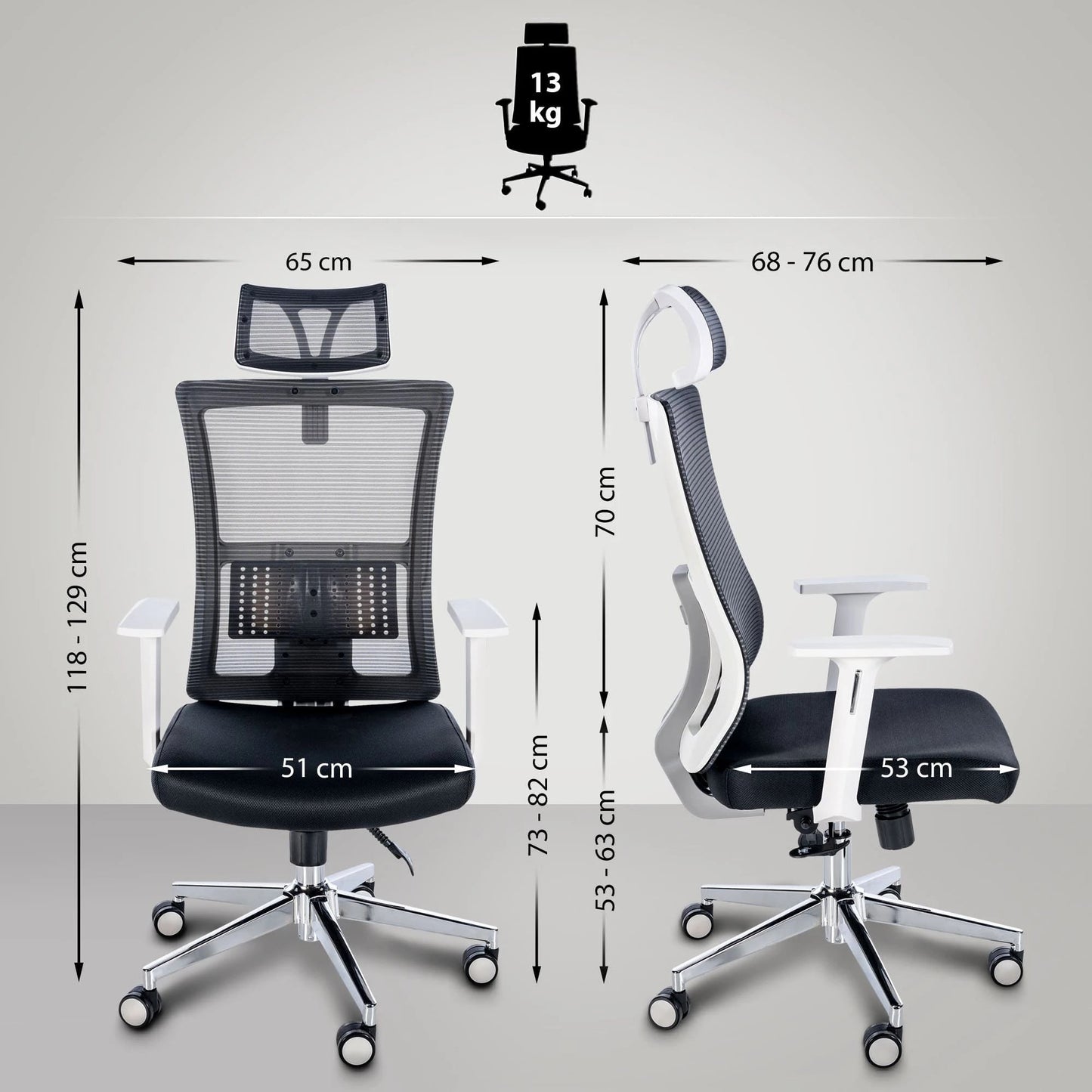 Armlehnenhöhe: 73 - 82 cm