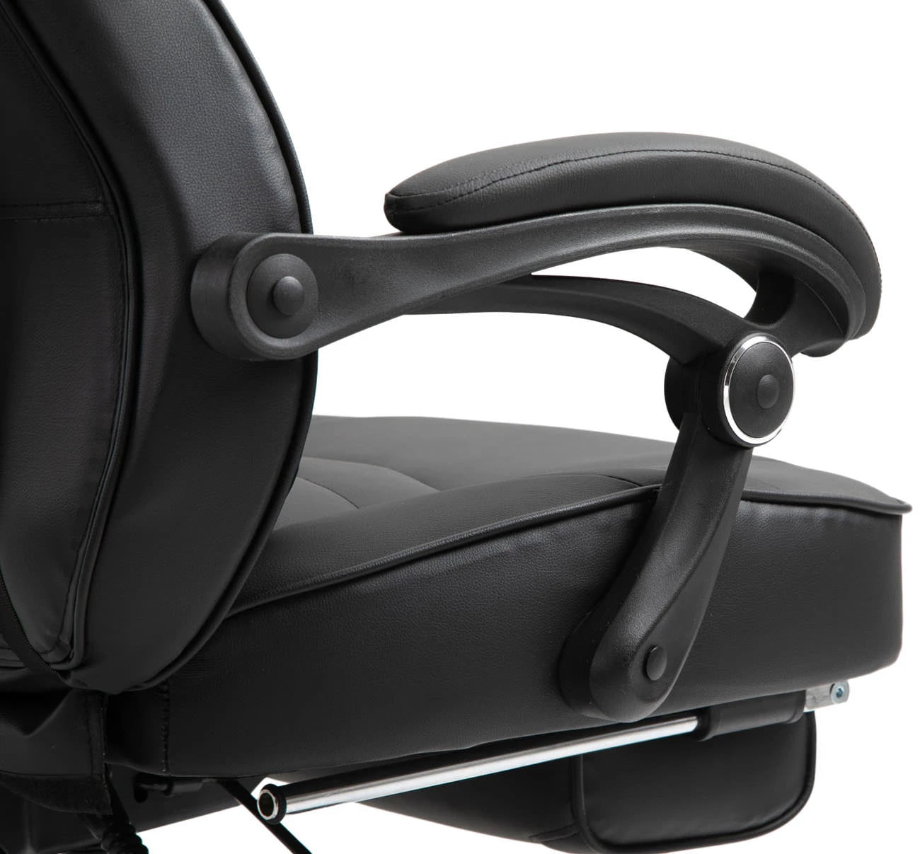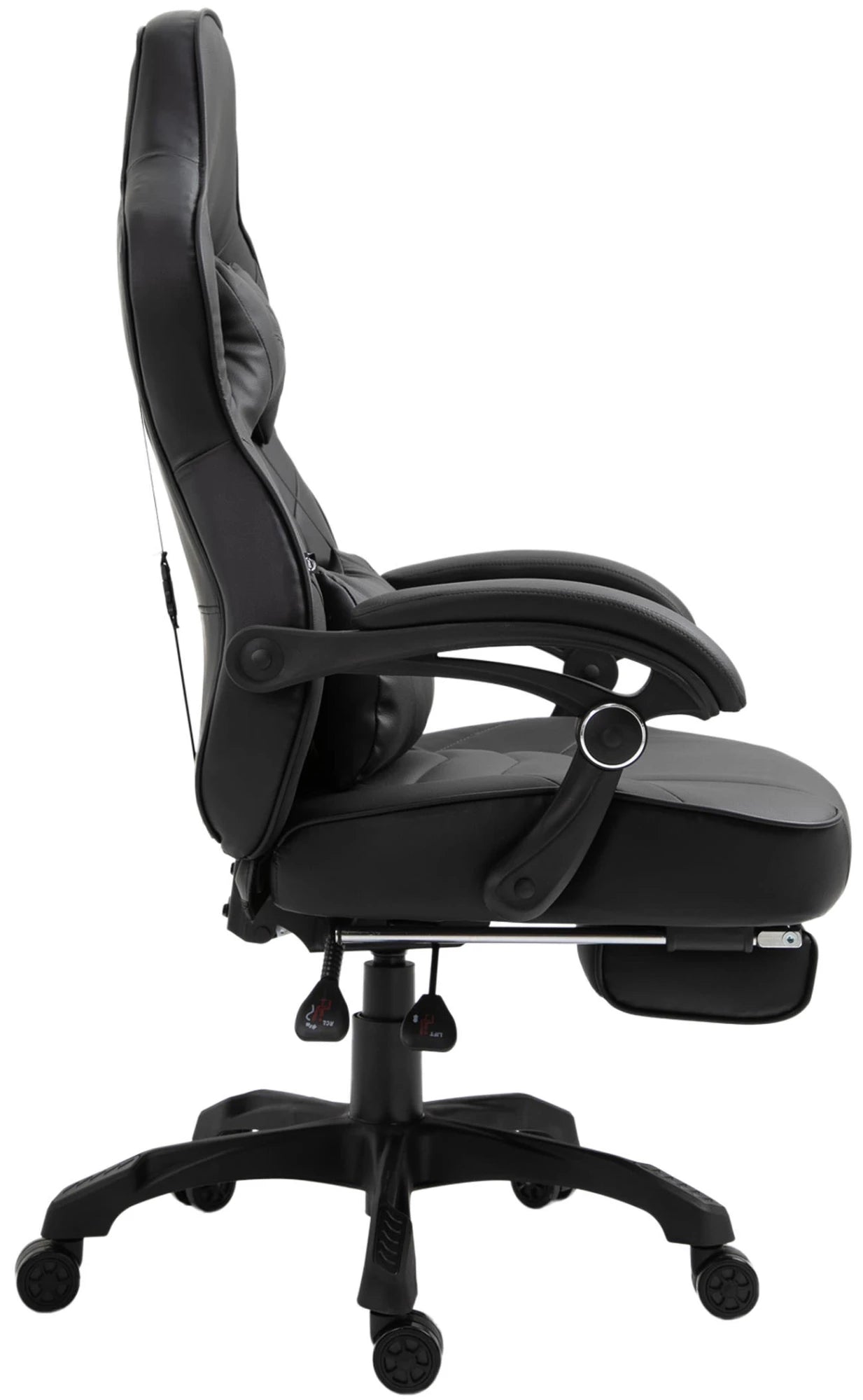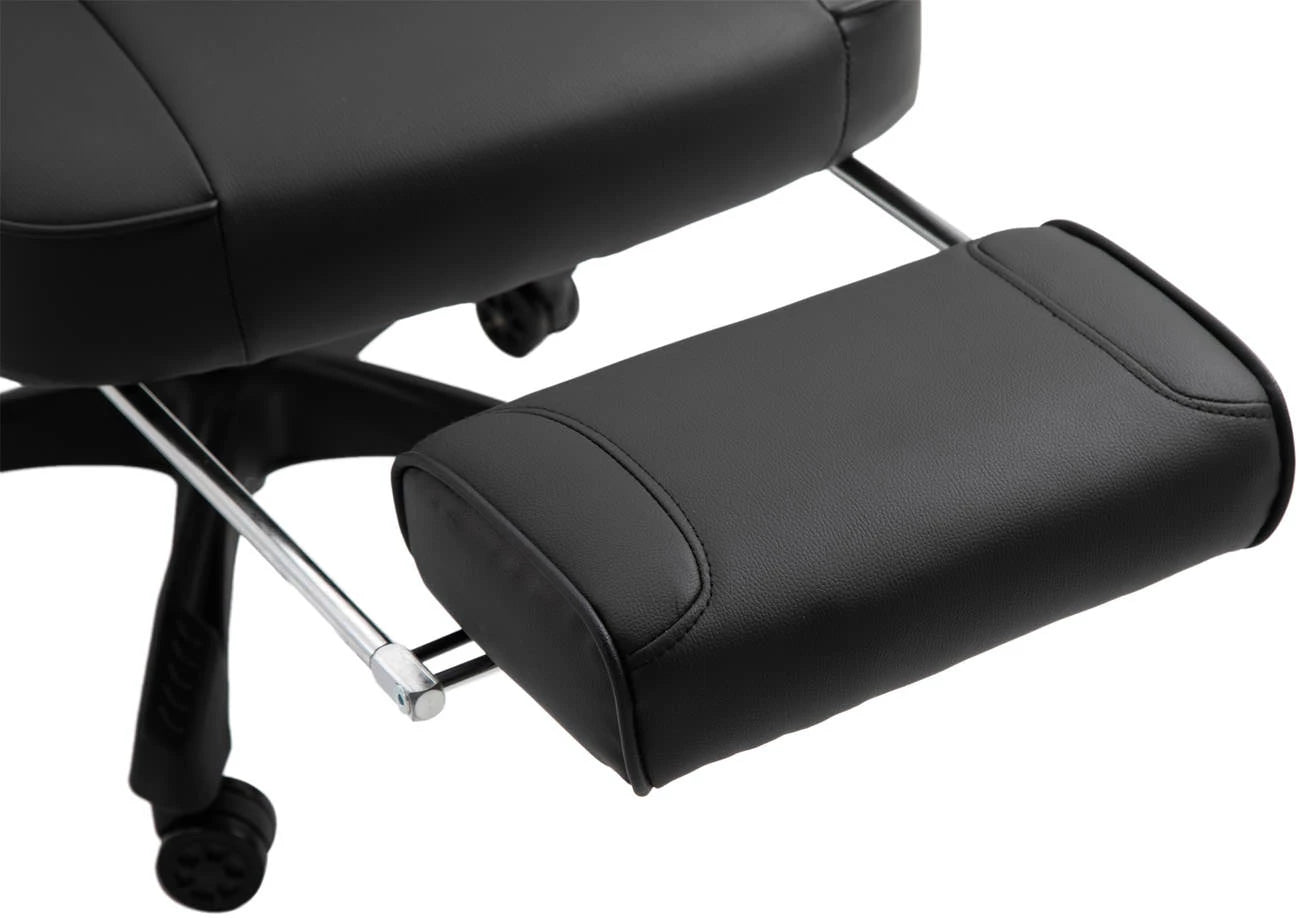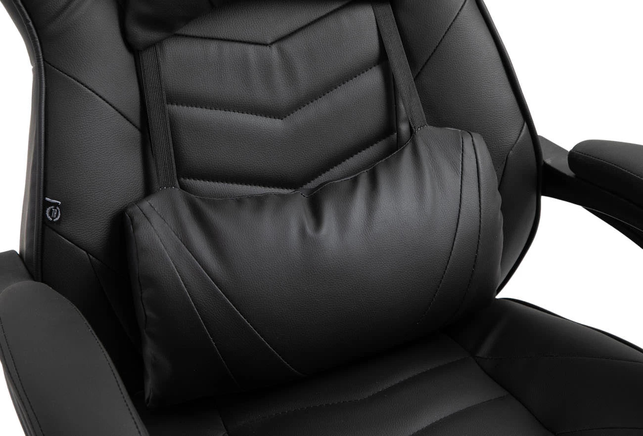 Der Bürostuhl Morty im attraktiven, sportlichen Design vereint Funktionalität und Komfort auf optimale Weise. Die angenehm gepolsterte Sitzfläche und Armlehnen sind mit pflegeleichtem Kunstleder bezogen. Das abnehmbare Nacken- und Lendenkissen sorgt nicht nur für eine gesunde Sitzposition, sondern auch für langanhaltenden Komfort. Die Rückenlehne ist bis zu 150° verstellbar und die integrierte Fußstütze sorgt auch für eine angenehme Pause zwischendurch. Der Bürostuhl steht sicher auf fünf leichtgängigen Rollen und einem Kunststoffgestell. Ob Hartboden oder Teppichboden, Sie rollen immer leicht und locker über den Boden.