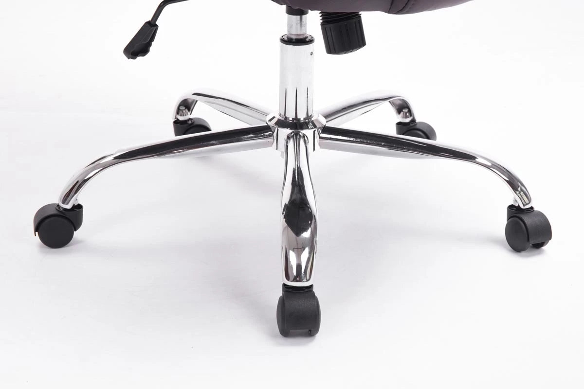 Der Chefsessel Noah ist ein exklusiver Bürostuhl mit sehr hochwertiger Polsterung und Kunstlederpolsterung. Kunstlederbezüge haben den Vorteil, dass sie elastisch sind und sich bei Entlastung wieder geschmeidig dehnen. Das sieht nicht nur schöner aus, sondern verlängert auch die Lebensdauer des Sitzbezugs. Das Gestell besteht aus Metall in Chromoptik und ist daher sehr stabil. Dank der verstellbaren Sitzhöhe ist ergonomisches Sitzen gewährleistet. Die Sitzhöhe ist über den Hebel unter dem Sitz stufenlos verstellbar. Der eingebaute Wippmechanismus sorgt für mehr Bewegungsfreiheit. Der Bürostuhl steht sicher auf fünf leichtgängigen Rollen. Ob Hartboden oder Teppichboden, Sie können immer leicht und locker über den Boden rollen.