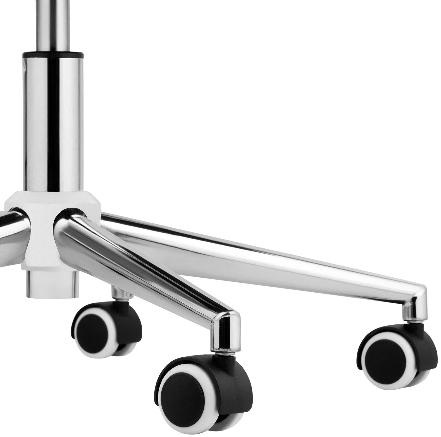Der Bürostuhl Pierce ist ein äußerst hochwertiger Bürostuhl mit sehr feiner Polsterung und Kunstleder. Kunstlederbezüge haben den Vorteil, dass sie elastisch sind und sich bei Entlastung wieder aufrichten. Das sieht nicht nur schöner aus, sondern verlängert auch die Lebensdauer des Sitzbezugs. Die Sitzhöhe ist stufenlos verstellbar. Der Rahmen besteht aus Metall und ist sehr stabil. Der Bürostuhl steht sicher auf fünf leichtgängigen Rollen. Egal ob Hartboden oder Teppich, Sie rollen immer leicht und locker über den Boden.