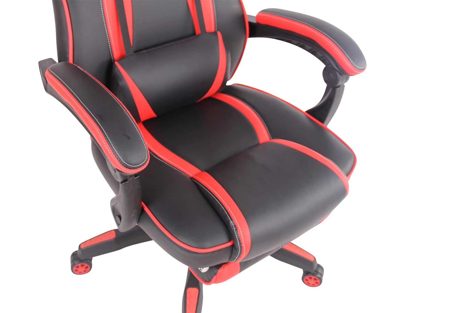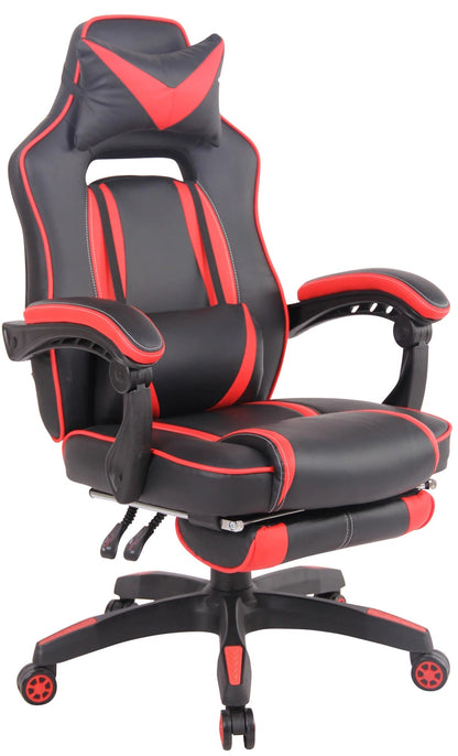 In And OutdoorMatch Bürostuhl Polly - Schwarz und Rot - Fußstütze - Kunstleder - Hochwertige Polsterung - Bequemer Bürostuhl - Luxuriöses Erscheinungsbild