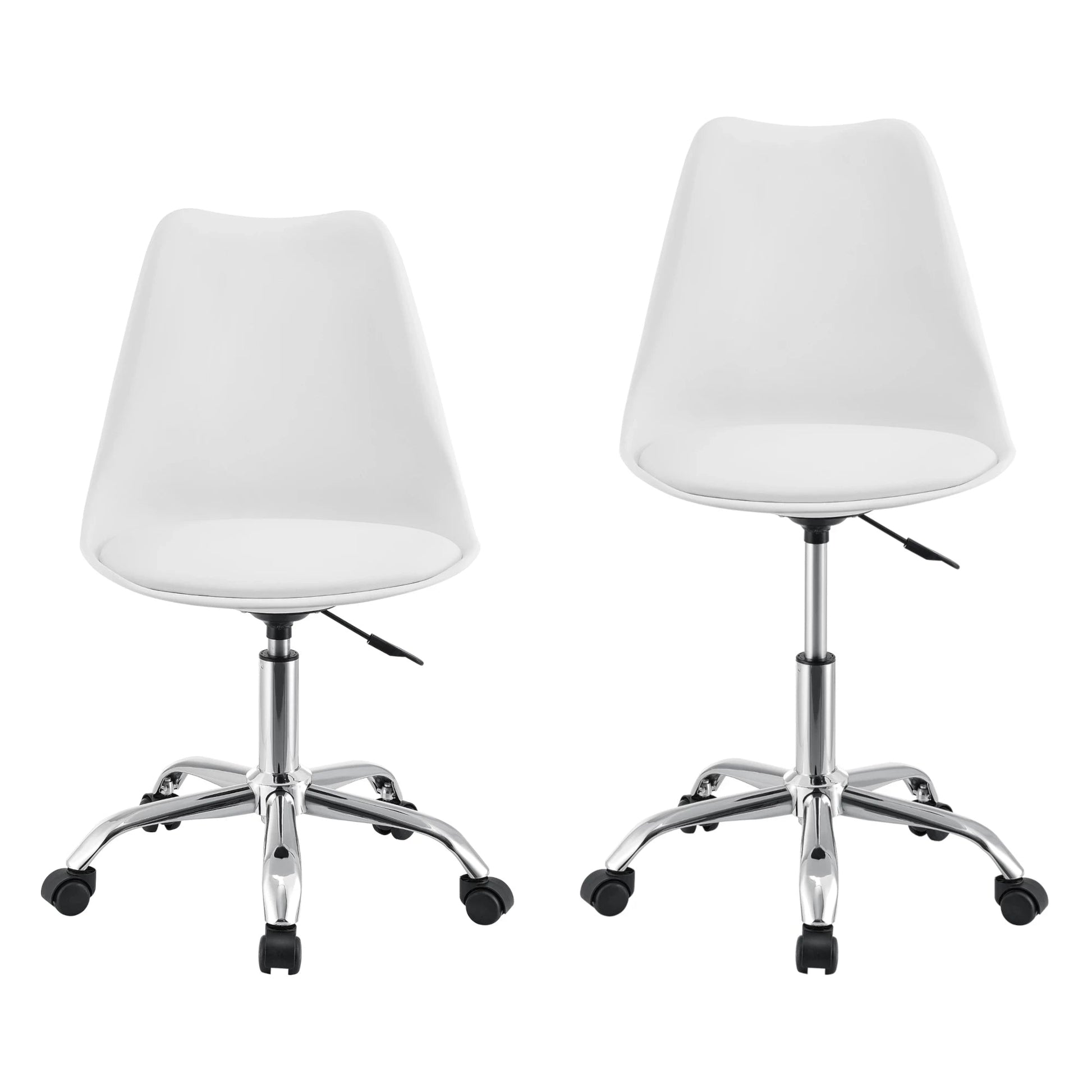 In And OutdoorMatch Bürostuhl Providenci – Auf Rollen – 83–93 x 48 x 55 cm – Weiß – Metall und Kunstleder – Modernes Design