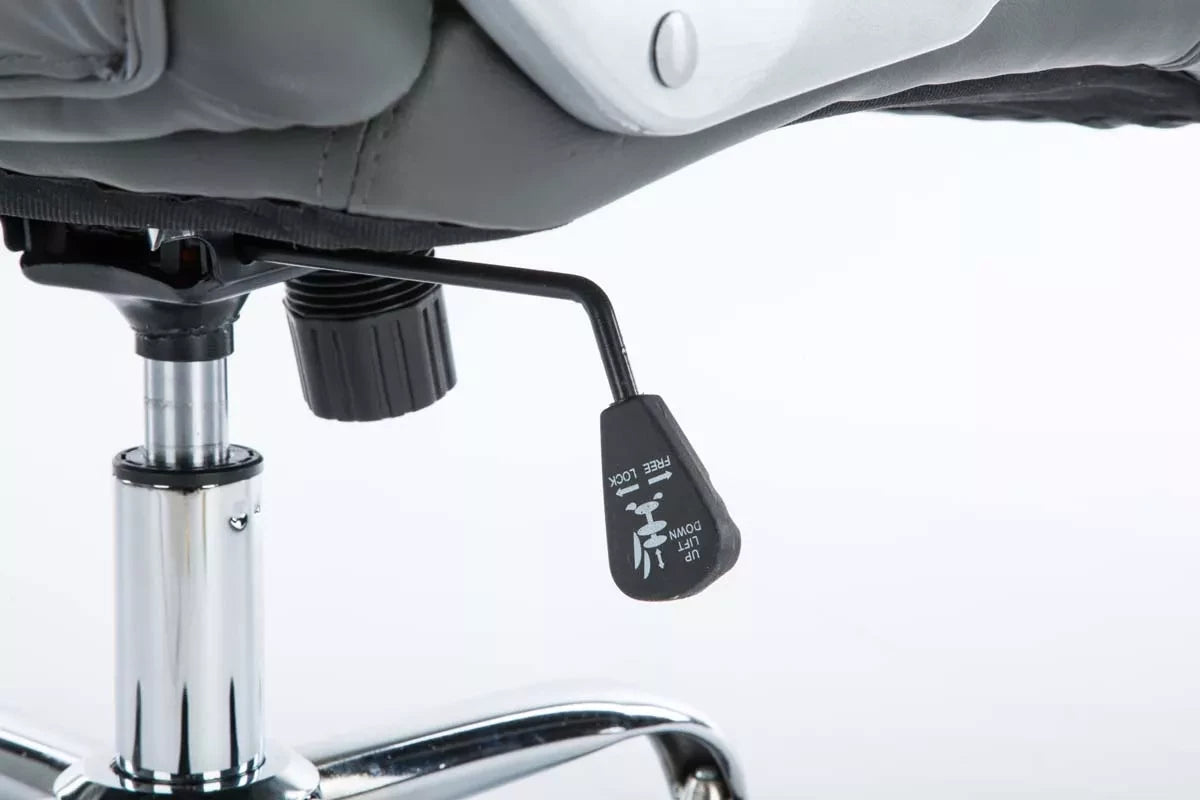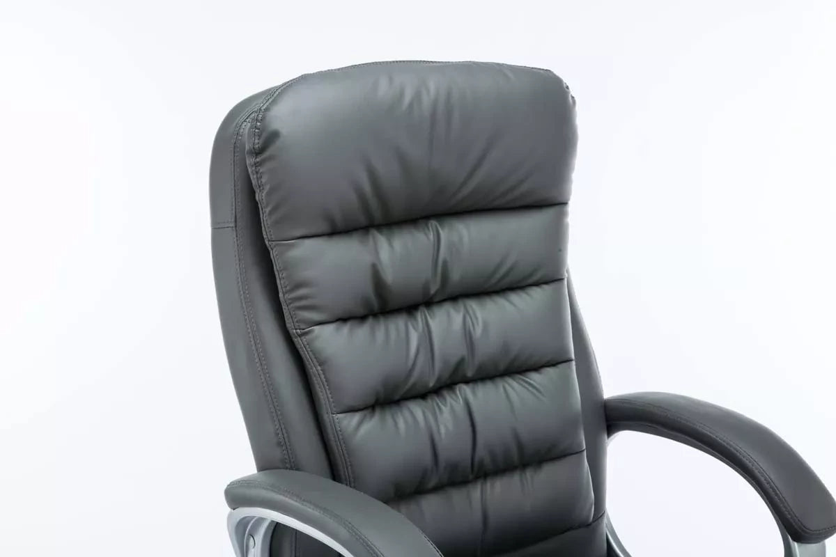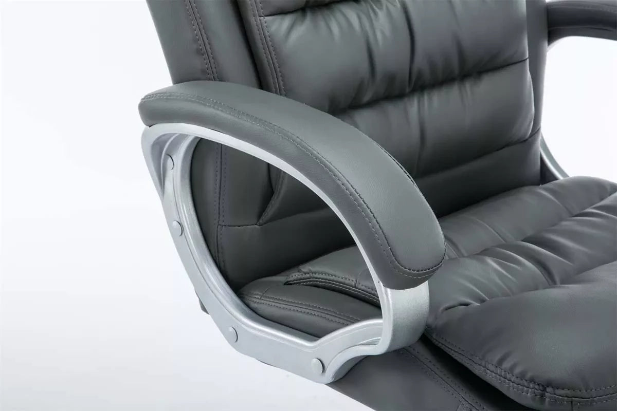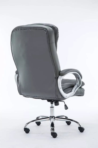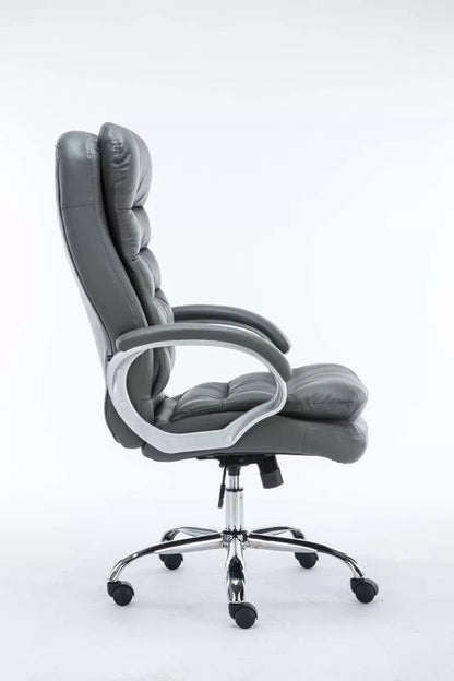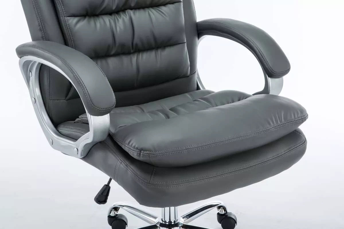 Der Chefsessel ist ein exklusiver Bürostuhl mit sehr hochwertiger Polsterung und Kunstlederpolsterung. Kunstlederbezüge haben den Vorteil, dass sie elastisch sind und sich bei Entlastung wieder aufrichten. Das sieht nicht nur schöner aus, sondern verlängert auch die Lebensdauer des Sitzbezugs. Das Gestell besteht aus Metall in Chromoptik und ist daher sehr stabil.
