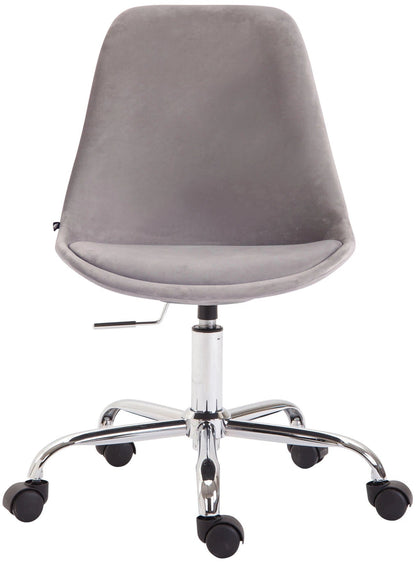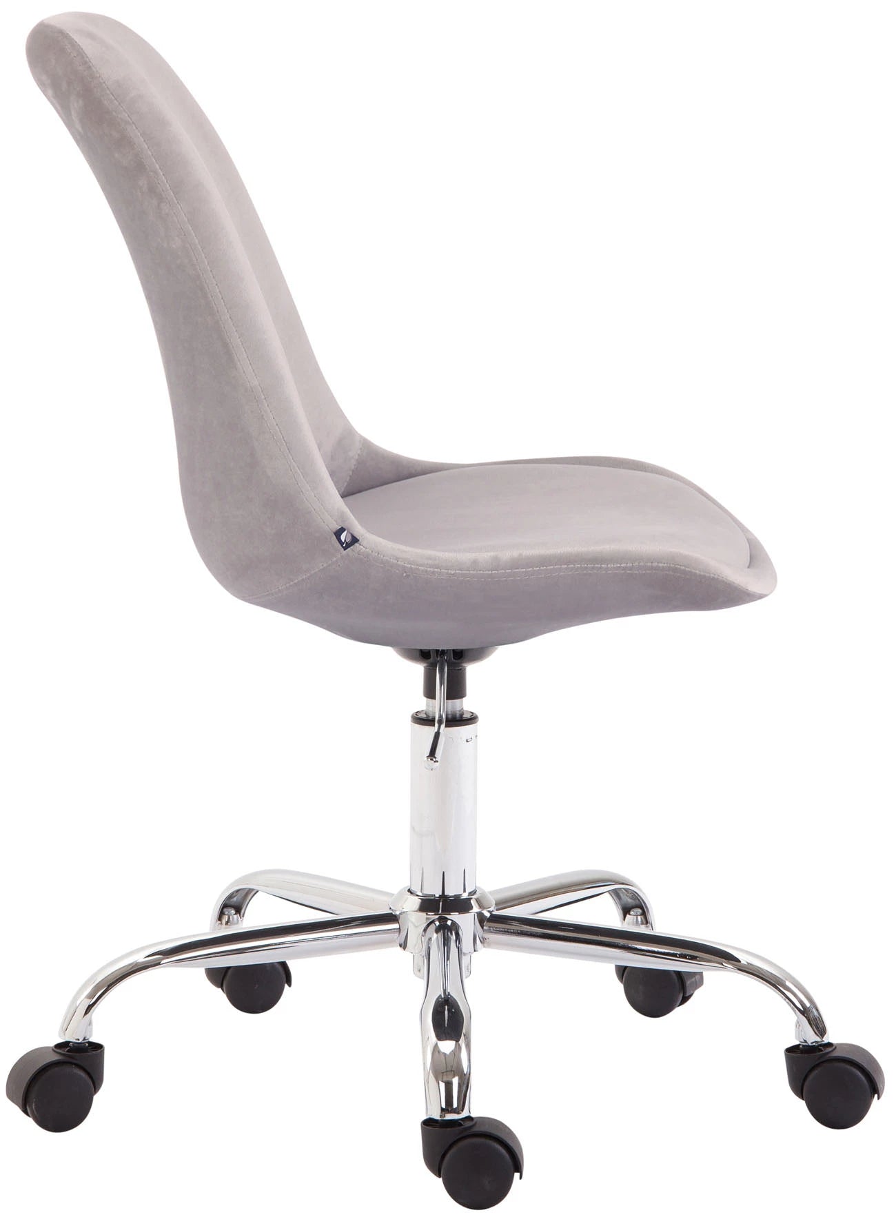 Dieser Bürostuhl sieht durch den Materialmix aus Samt und Metall in Chromoptik einfach stilvoll aus und überzeugt durch seine Funktionalität. Dank seines praktischen Designs eignet er sich auch für kleinere Räume. Der gepolsterte Sitz ist mit Samtpolsterung bezogen und die stufenlos verstellbare Sitzhöhe ermöglicht ergonomisches Sitzen. Er steht sicher auf fünf leichtgängigen Rollen und einem Metallgestell in Chromoptik. Egal ob Hartboden oder Teppich, Sie rollen leicht und locker über den Boden.