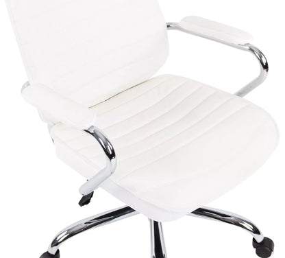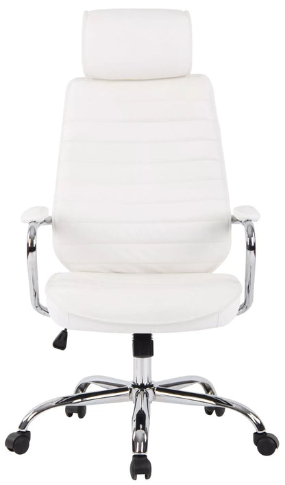 Der Chefsessel Tania ist ein Bürostuhl mit sehr hochwertiger Polsterung und moderner Optik. Die Echtlederpolsterung sieht nicht nur toll aus, sondern ist auch besonders robust und pflegeleicht. Ein stabiles Metallgestell in Chromoptik sorgt zudem für einen sicheren Stand. Die Sitzhöhe ist stufenlos verstellbar und garantiert ergonomisches Sitzen auch über Stunden hinweg. Der eingebaute Wippmechanismus sorgt zudem für mehr Bewegungsfreiheit. Der Drehstuhl Silvia steht stabil auf fünf leichtgängigen Rollen. Egal ob Hartboden oder Teppich, Sie rollen immer leicht und locker über den Boden.