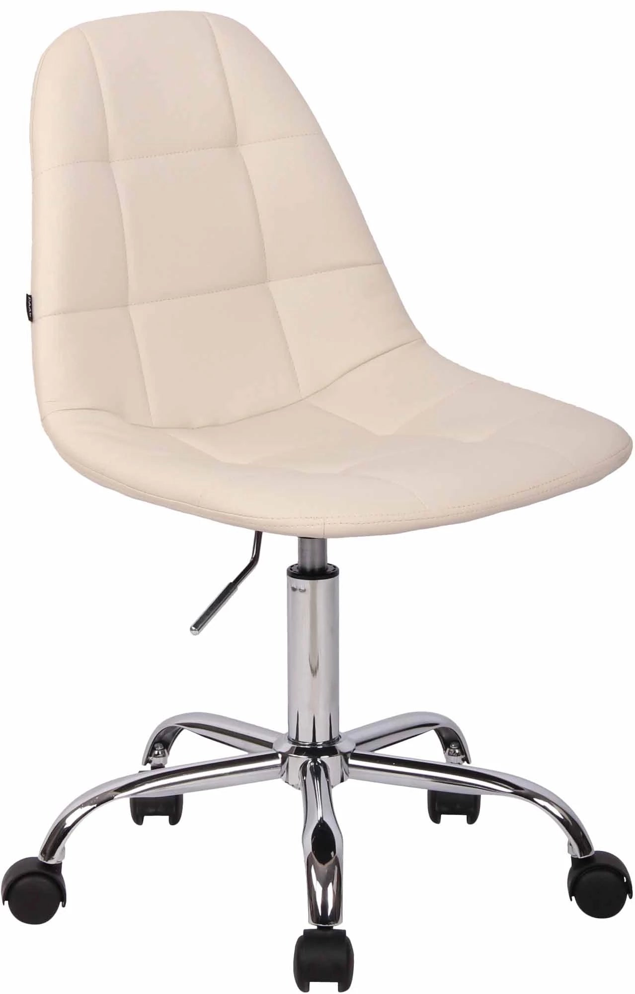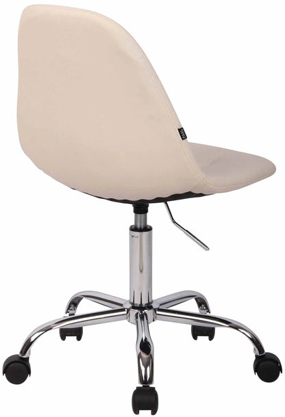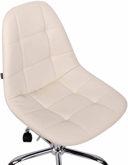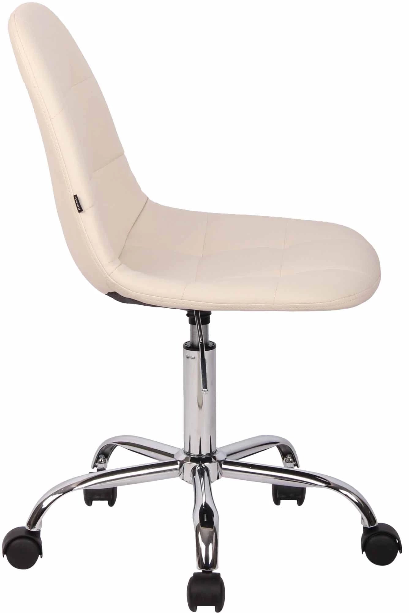 Der Bürostuhl Tatjana überzeugt durch seine bequeme Polsterung und eine schlanke, runde Optik. Rechteckige Ziernähte und leuchtende Farbvariationen machen den Bürostuhl zu einem optischen Highlight an jedem Arbeitsplatz. Die filigrane Sitzfläche ist mit einer Kunstlederpolsterung bezogen und dank der stufenlos verstellbaren Sitzhöhe ist ergonomisches Sitzen garantiert. Er steht sicher auf fünf leichtgängigen Rollen und einem Metallgestell in Chromoptik. Dank seines praktischen Designs eignet er sich auch für kleinere Räume und ist flexibel einsetzbar. Ob Hartboden oder Teppichboden, Sie rollen immer leicht und locker über den Boden.