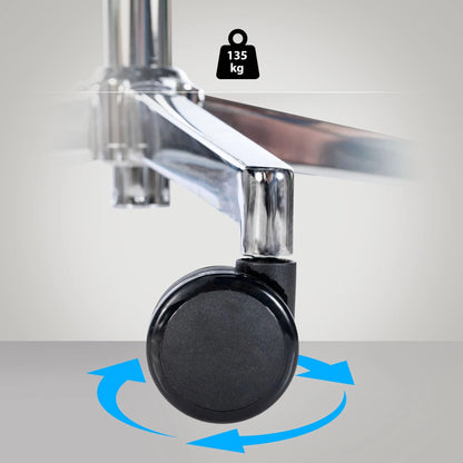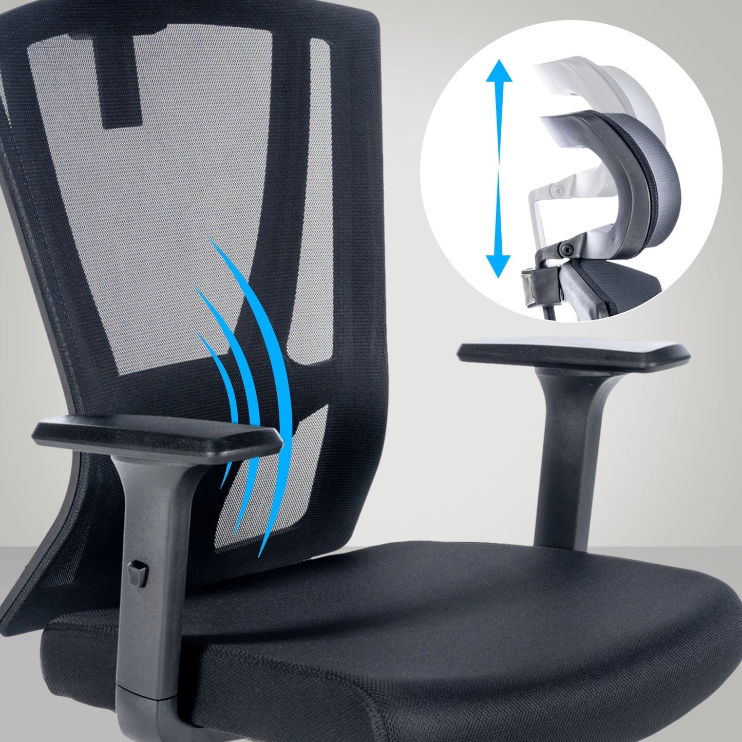 Darüber hinaus ist die Sitztiefe verstellbar und der Bürostuhl über den BIFMA-zertifizierten Gaslift höhenverstellbar. Für noch mehr Komfort sorgt der atmungsaktive Netzbezug der Rückenlehne und Kopfstütze, während die bequeme Polsterung der Sitzfläche mit strapazierfähigem Stoff bezogen ist. Schließlich sorgt das äußerst robuste Kunststoffgestell mit leichtlaufenden Rollen für einen stabilen Stand des Drehstuhls. Der Bürostuhl ist maximal 135 kg belastbar.