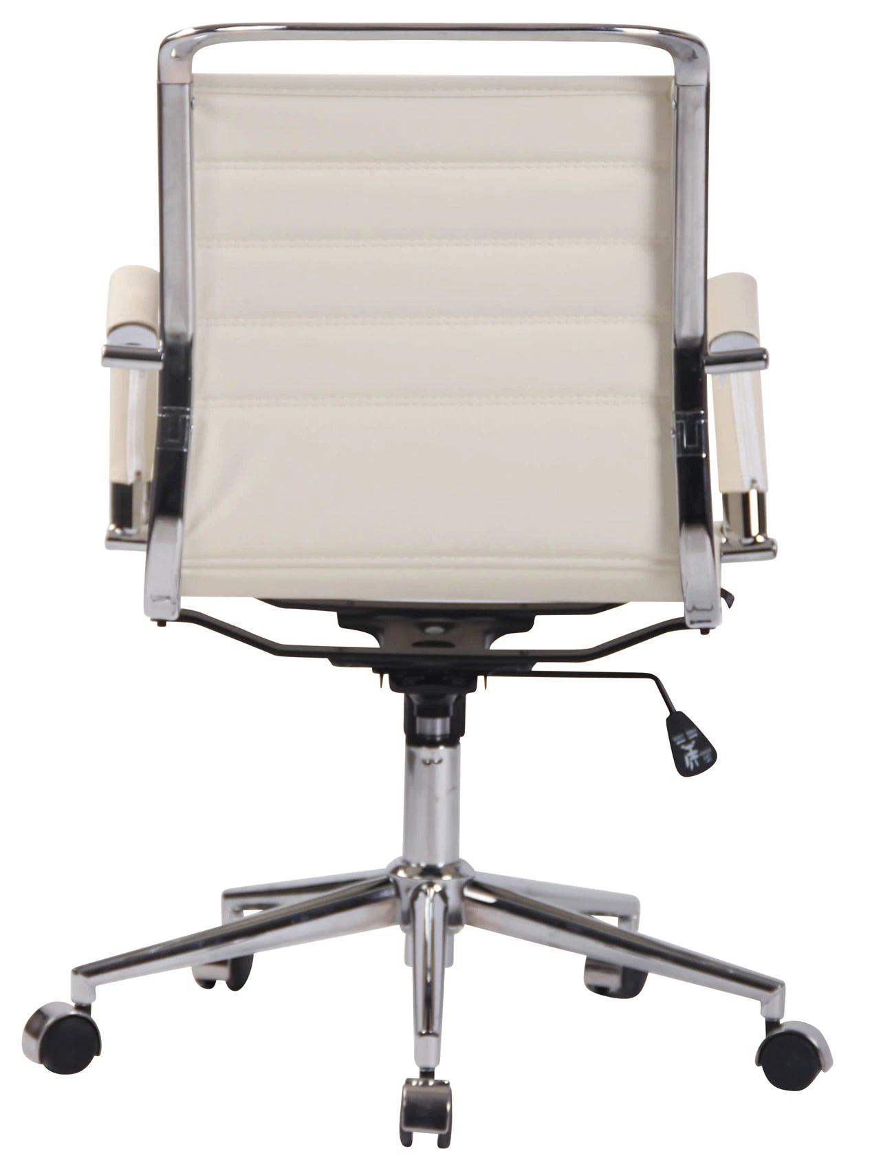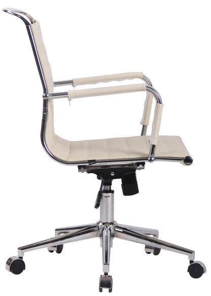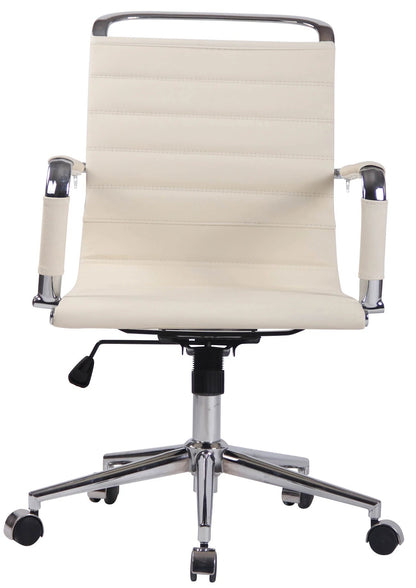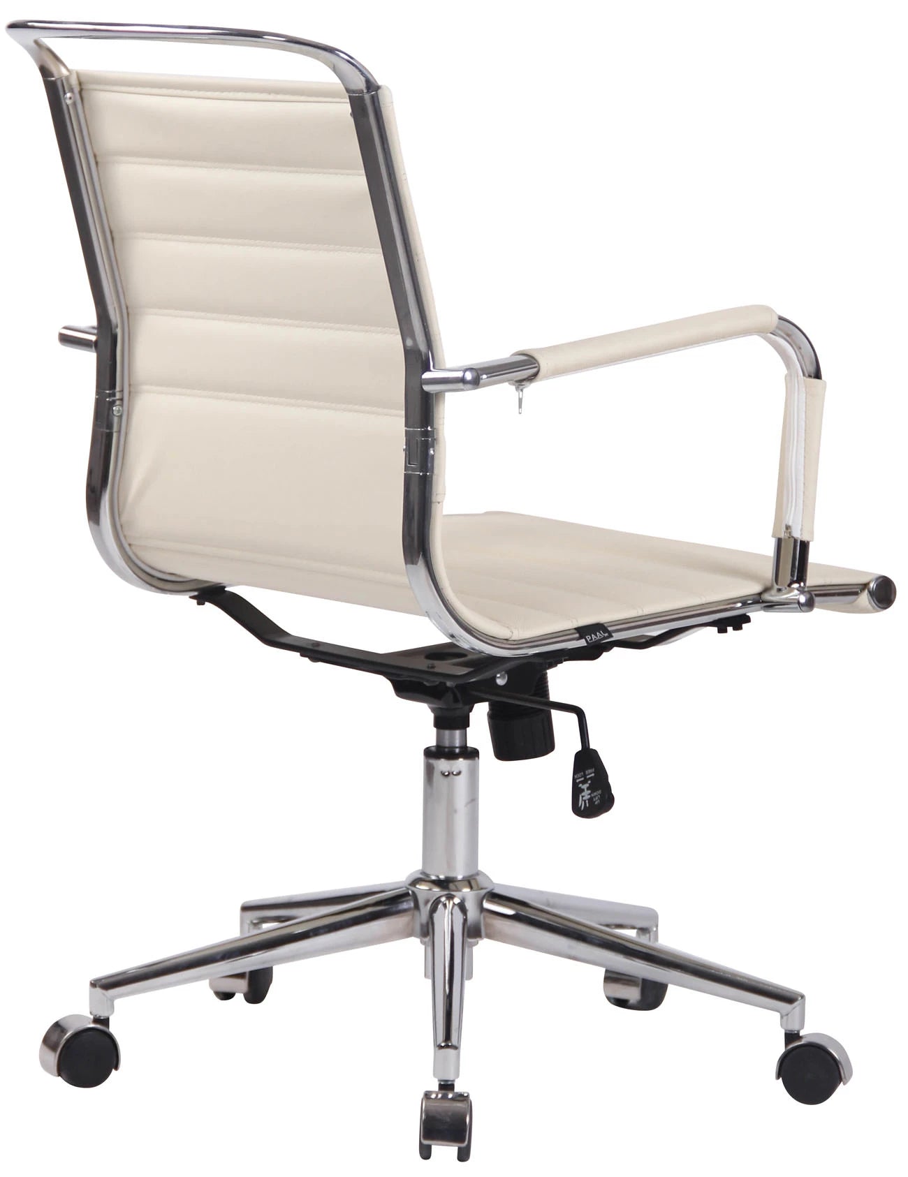 Dieser Toni-Bürostuhl überzeugt nicht nur durch sein modernes Erscheinungsbild, auch in puncto Komfort macht ihm niemand etwas vor. Der Drehstuhl ist mit Kunstleder- oder Echtlederpolsterung erhältlich und besonders pflegeleicht. Darüber hinaus ist die Sitzhöhe stufenlos verstellbar und garantiert eine ergonomische Sitzposition. Darüber hinaus ist der Bürostuhl mit einer Wippmechanik ausgestattet, die für mehr Bewegungsfreiheit sorgt. Stabilität wird durch das Metallgestell in Chromoptik gewährleistet. Dank der fünf leichtgängigen Rollen rollen Sie leicht und locker über den Boden – sowohl auf Hartböden als auch auf Teppichen. Das elegante Chromgestell und die stabilen, geschwungenen Armlehnen verleihen dem Ganzen das gewisse Extra und runden das Design ab.
