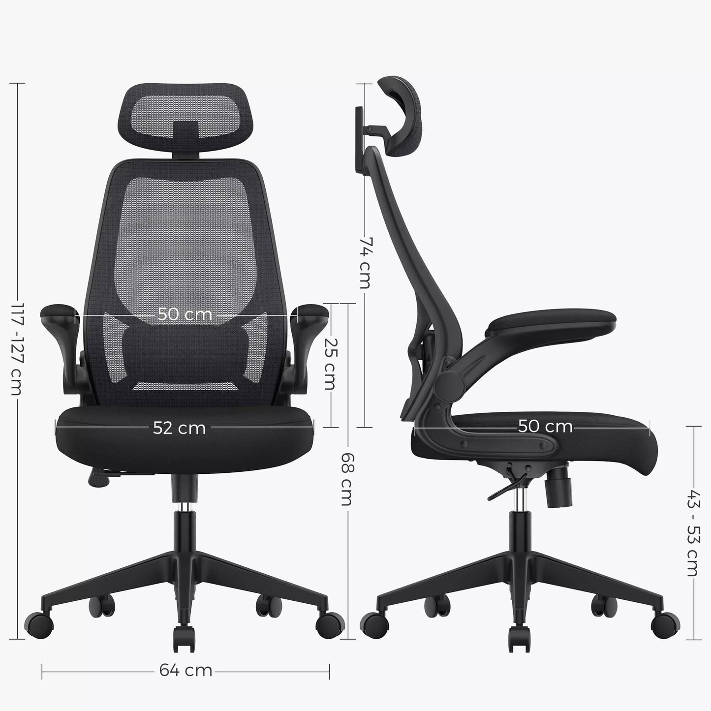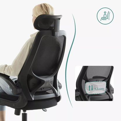 In And OutdoorMatch Bürostuhl Viviane – Computerstuhl – Ergonomischer Stuhl – Verstellbare Armlehnen und Kopfstütze – Schaukelfunktion – Atmungsaktives Netzgewebe – Höhenverstellbar – Schwarz