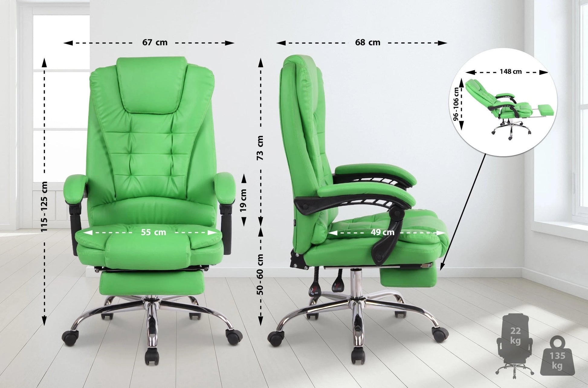 In And OutdoorMatch Bürostuhl Warrick – Grün – Fußstütze – Kunstleder – Exklusiver Bürostuhl – Hochwertige Polsterung – Bequemer Bürostuhl – Luxuriöse Optik