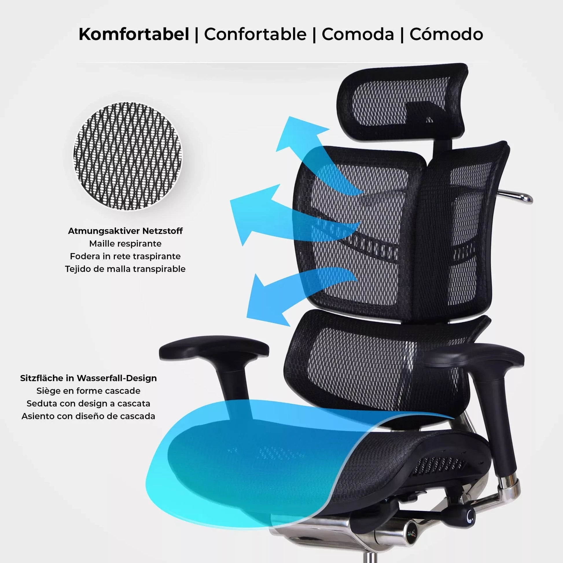 Der ergonomische Bürostuhl Wayne ist ein Bürostuhl der Spitzenklasse. Dank seiner außergewöhnlichen Ergonomie ist dieser Drehstuhl auch ideal für Langzeitarbeiten geeignet.