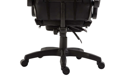 Der Bürostuhl Wilhelm im attraktiven, sportlichen Design vereint Funktionalität und Komfort auf optimale Weise. Die angenehm gepolsterte Sitzfläche und Armlehnen sind mit pflegeleichtem Kunstleder bezogen. Die beiden abnehmbaren Nacken- und Rückenkissen sorgen nicht nur für eine gesunde Sitzposition, sondern auch für langfristigen Komfort. Auch die leicht verstellbare Rückenlehne und die integrierte Fußstütze sorgen für eine angenehme Pause zwischendurch. Der Bürostuhl steht sicher auf fünf leichtgängigen Rollen und einem Kunststoffgestell. Ob Hartboden oder Teppichboden, Sie rollen immer leicht und locker über den Boden.