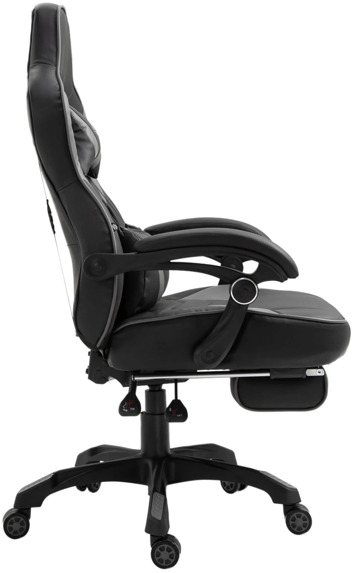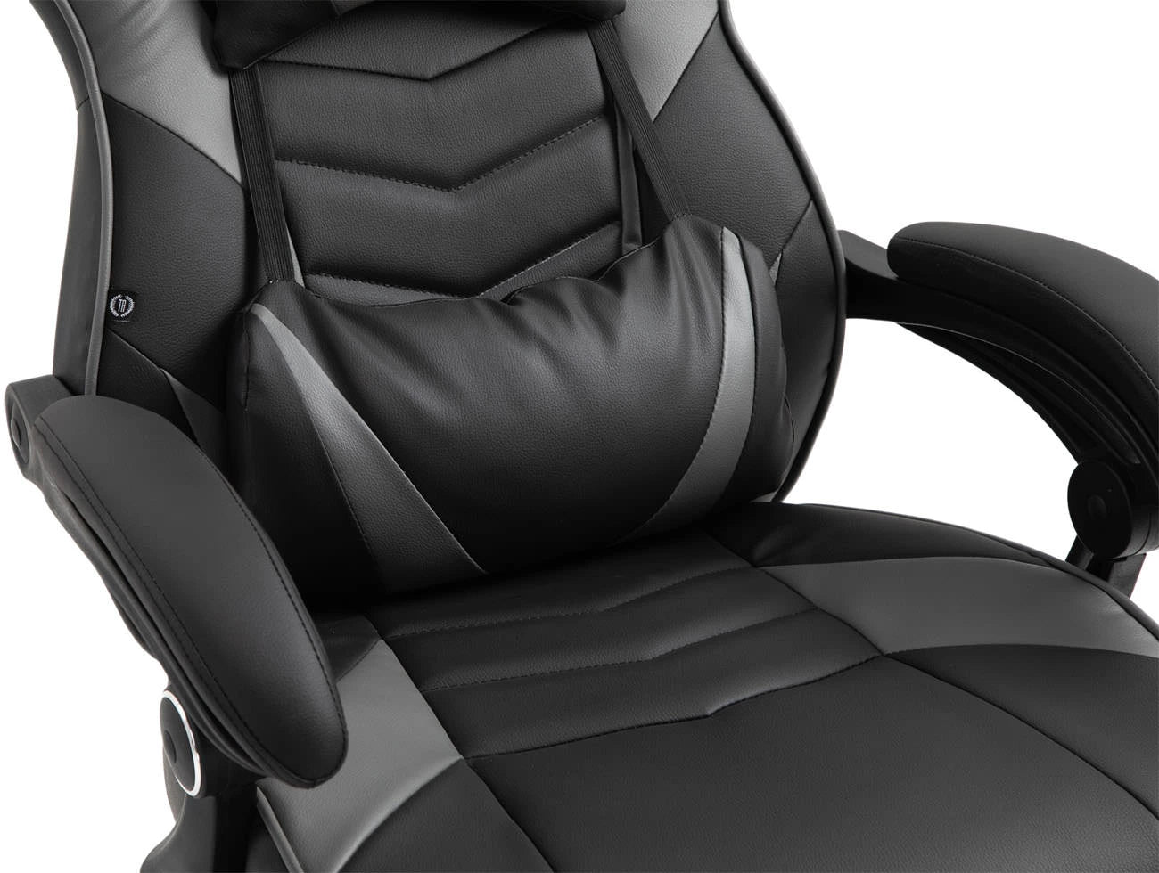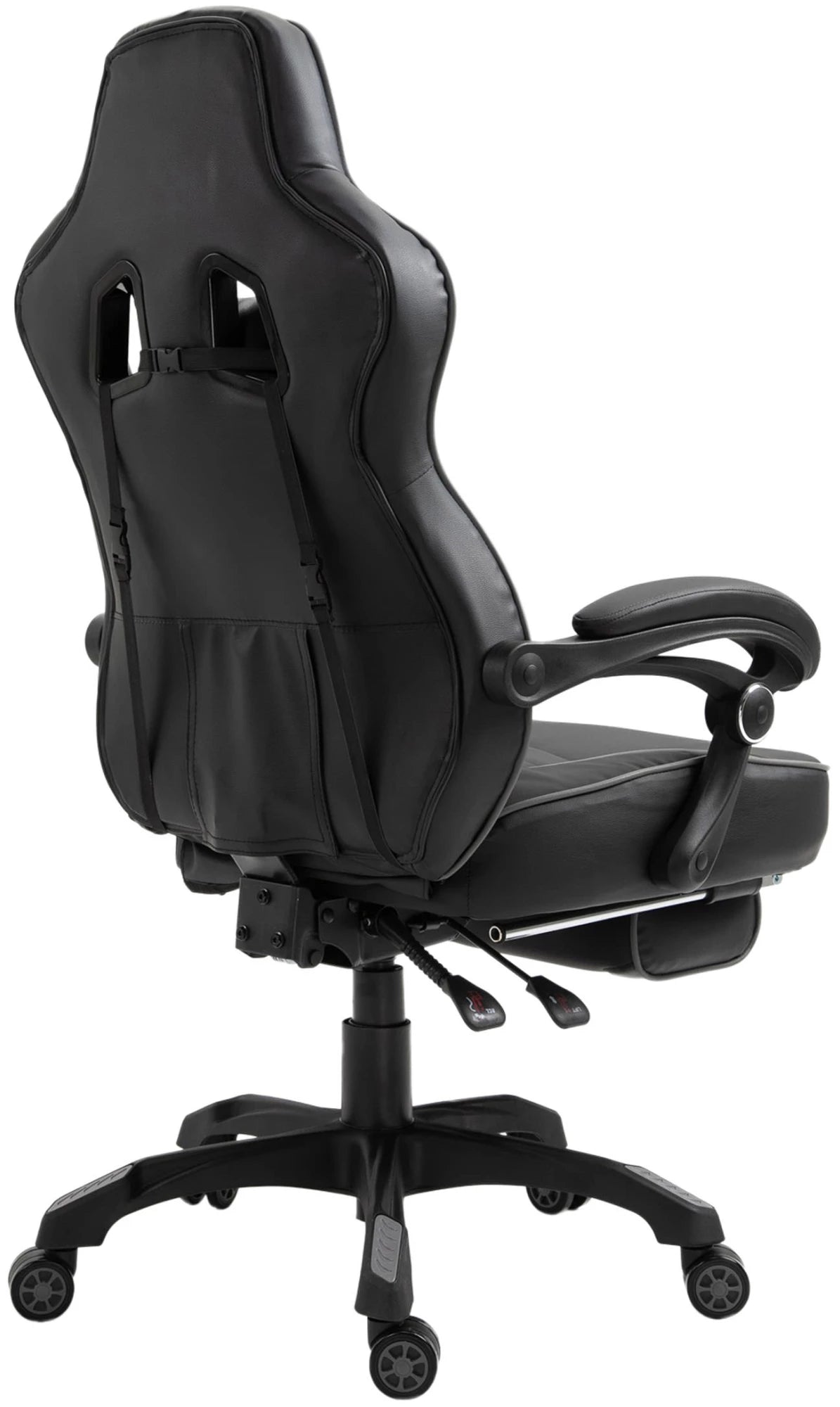 Der Bürostuhl Winifred im attraktiven, sportlichen Design vereint Funktionalität und Komfort auf optimale Weise. Die angenehm gepolsterte Sitzfläche und Armlehnen sind mit pflegeleichtem Kunstleder bezogen. Das abnehmbare Nacken- und Lendenkissen sorgt nicht nur für eine gesunde Sitzposition, sondern auch für langanhaltenden Komfort. Die Rückenlehne ist bis zu 150° verstellbar und die integrierte Fußstütze sorgt auch für eine angenehme Pause zwischendurch. Der Bürostuhl steht sicher auf fünf leichtgängigen Rollen und einem Kunststoffgestell. Ob Hartboden oder Teppichboden, Sie können immer leicht und locker über den Boden rollen.
