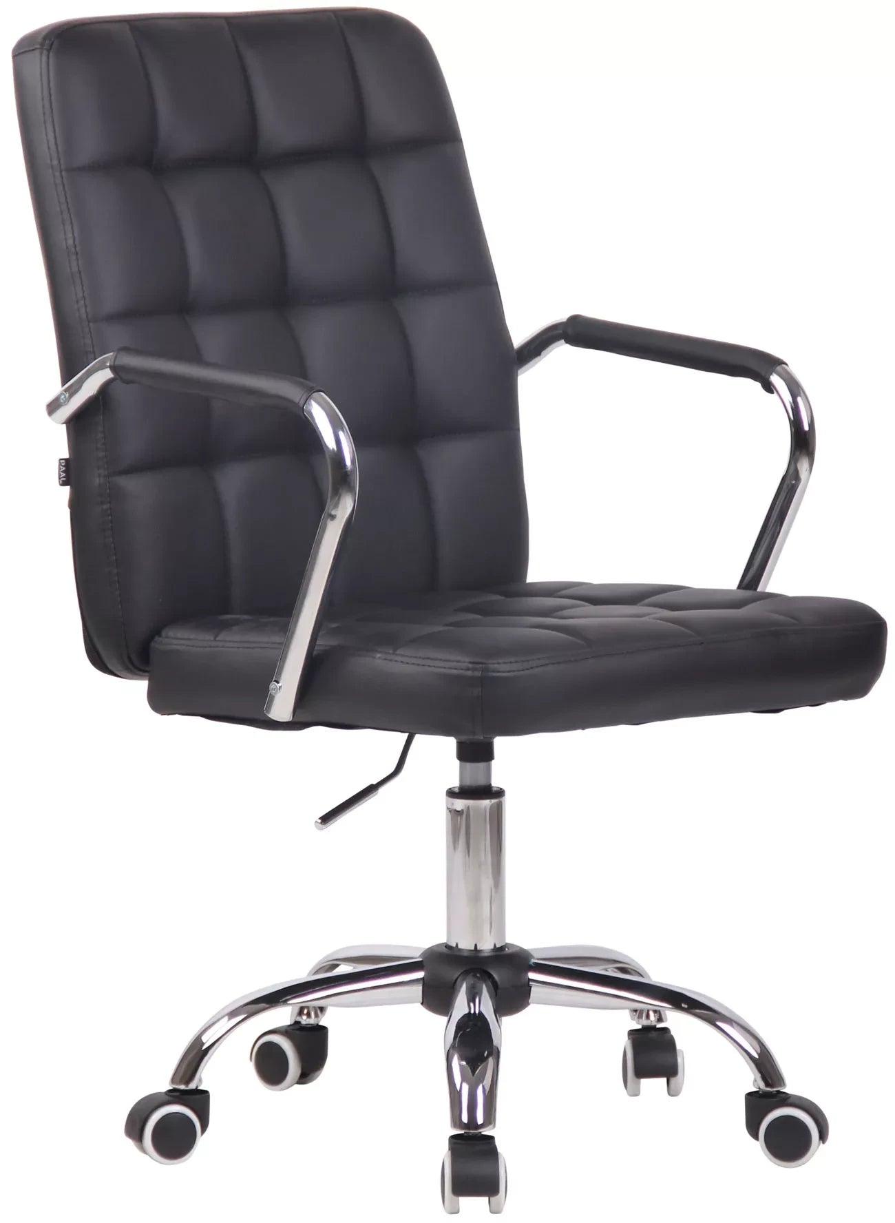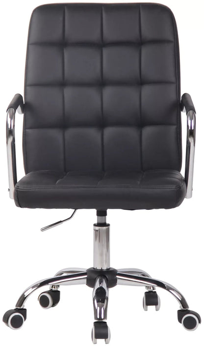 Der Bürostuhl Winston überzeugt durch sein modernes Design und bietet dank der Rückenlehne hohen Komfort beim Arbeiten. Dieser Drehstuhl ist sehr hochwertig gepolstert und mit Kunstleder oder Stoff bezogen. Das elegante Chromgestell und die stabilen geschwungenen Armlehnen mit Bezug verleihen dem Ganzen das gewisse Extra. Die Sitzhöhe ist mit dem Hebel unter dem Sitz stufenlos verstellbar. Der Bürostuhl steht sicher auf einem Metallgestell in Chromoptik mit fünf leichtgängigen Rollen. Egal ob Hartboden oder Teppich, Sie rollen immer leicht und locker über den Boden.
