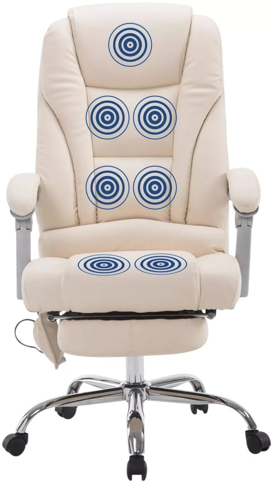 In And OutdoorMatch Bürostuhl Zico - Massagefunktion - Creme - Kunstleder - Ergonomischer Bürostuhl - Auf Rollen - Für Erwachsene - Höhenverstellbar