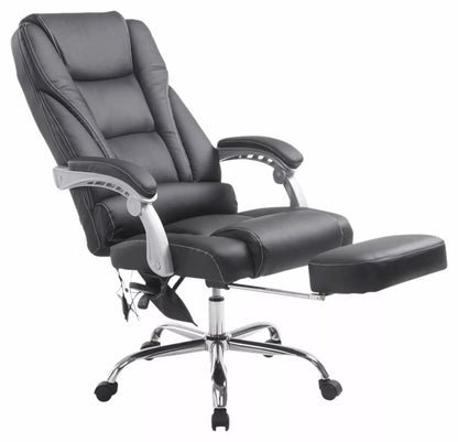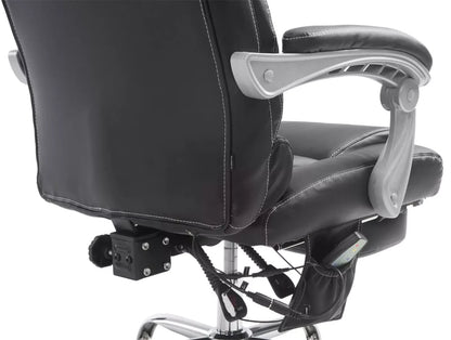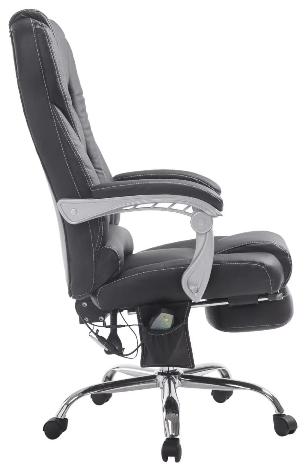 Auch die Fußstütze und die neigbare Rückenlehne des ergonomischen Stuhls tragen zu einem außergewöhnlichen Sitzkomfort bei. Lehnen Sie sich zurück und genießen Sie! Der Bürostuhl ist stufenlos höhenverstellbar und um 360 Grad drehbar. Er steht sicher auf dem Metallgestell und fünf leichtgängigen Rollen, die den Stuhl auf Hartböden und Teppichen mobil halten. Der Massagesessel hat eine Belastbarkeit von bis zu 150 kg.