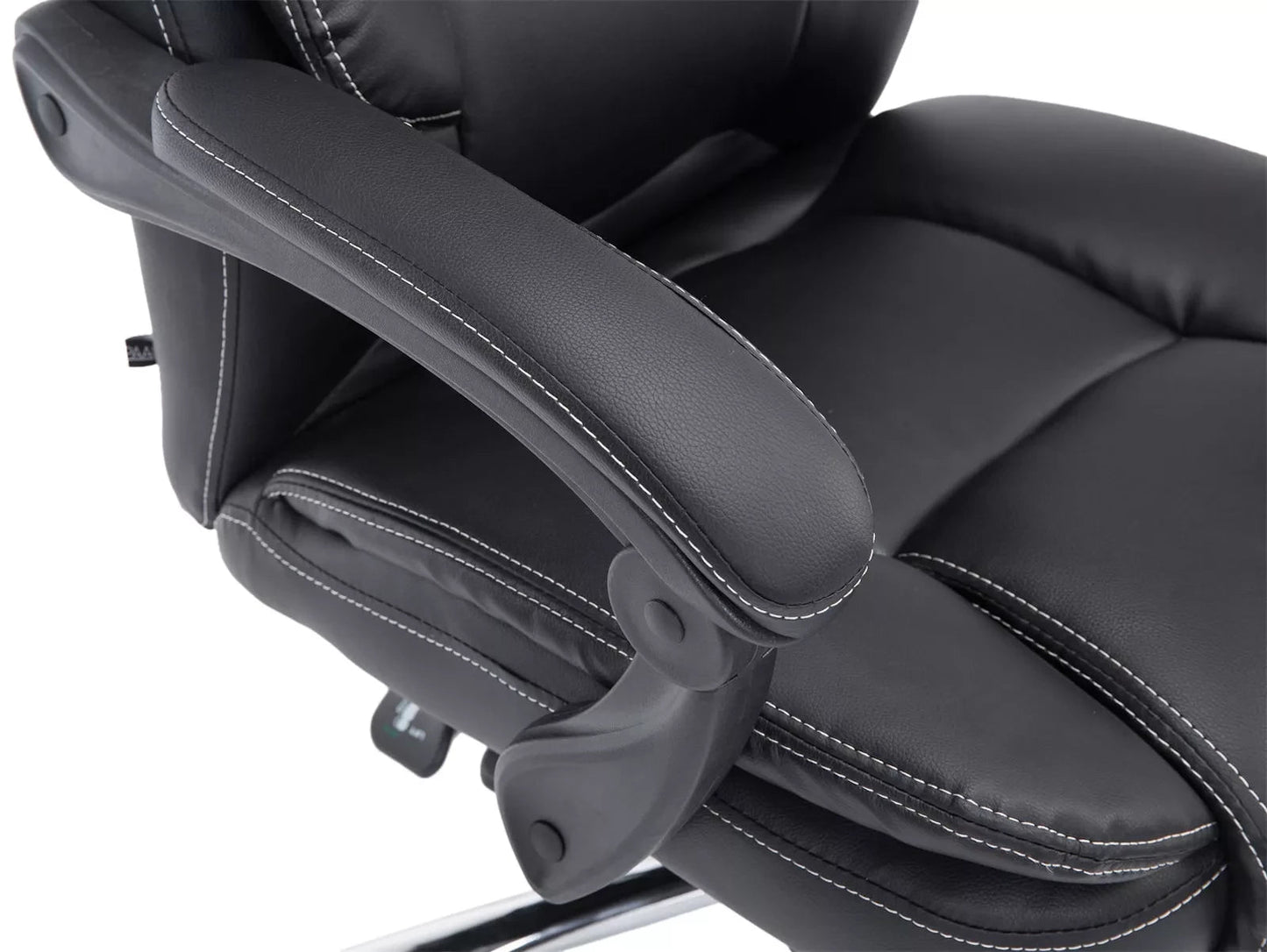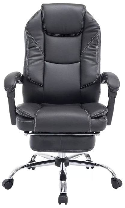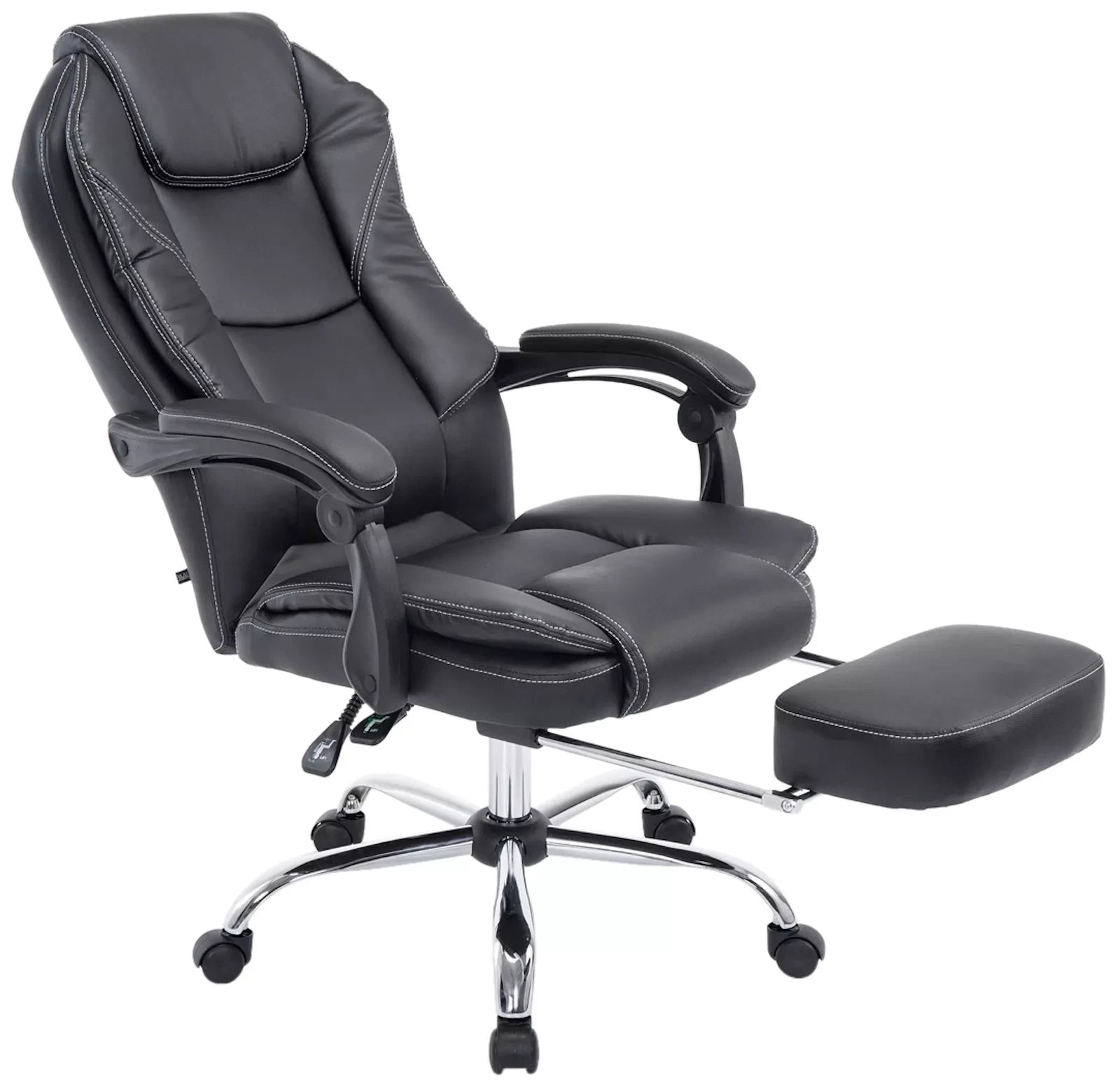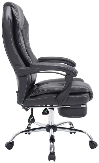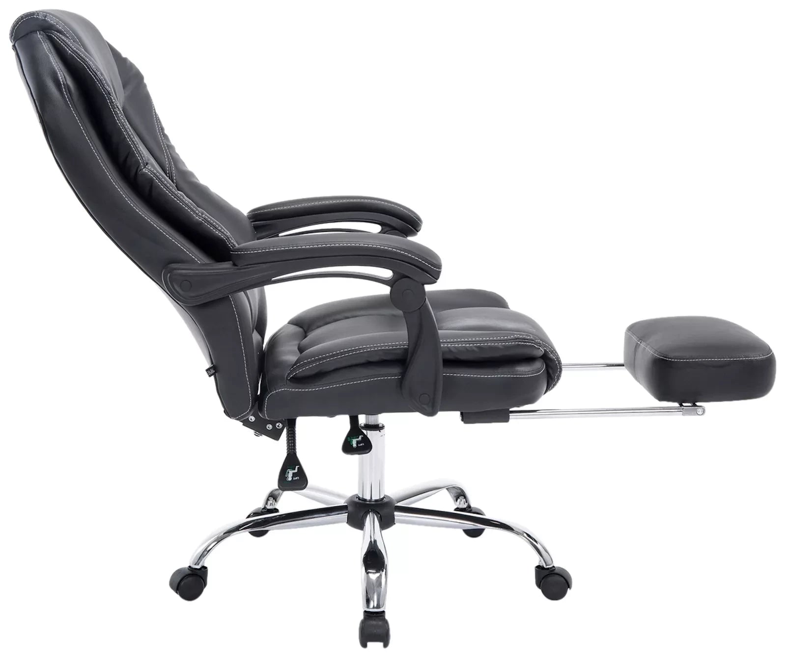 Bei Brostuhl ist Geselligkeit im klassischen Look angesagt. Hochwertige Polster und pflegeleichte Kunstlederbezüge sorgen für ein angenehmes Sitzgefühl, das auch nach einem längeren Aufenthalt anhält. Die leicht verstellbare Fußstütze und Rückenlehne sorgen auch zwischendurch für eine angenehme Pause, in der Sie sich zurücklehnen und die Füße hochlegen können. Dank der stufenlos verstellbaren Sitzhöhe garantiert der Bürostuhl stets ergonomisches Sitzen. Er steht sicher auf fünf leichtgängigen Rollen und einem Metallgestell in Chromoptik.