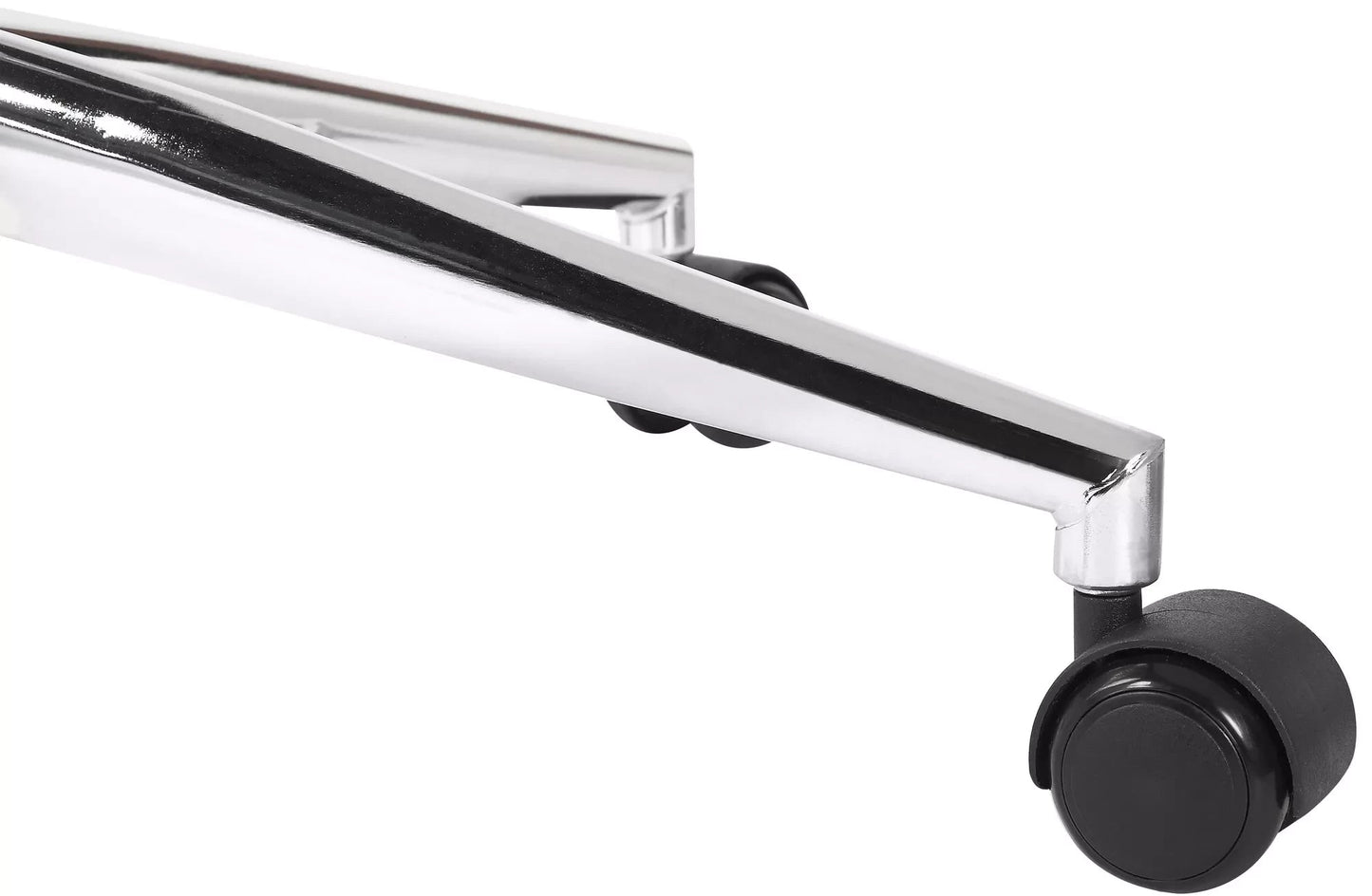 Der Bürostuhl Retta ist ein stilvoller Drehstuhl mit hochwertiger Polsterung und einem Bezug aus Kunstleder oder Stoff. Die Sitzschale aus Bugholz macht diesen Bürostuhl zum absoluten Hingucker und verleiht ihm ein elegantes Design. Dank der stufenlos verstellbaren Sitzhöhe ist ergonomisches Sitzen gewährleistet und die eingebaute Wippmechanik sorgt für mehr Bewegungsfreiheit. Das Gestell besteht aus Metall in Chromoptik und ist sehr stabil. Der Bürostuhl steht sicher auf fünf leichtgängigen Rollen. Egal ob Hartboden oder Teppich, Sie rollen immer leicht und locker über den Boden.