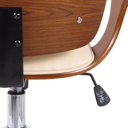 In And OutdoorMatch Designer-Bürostuhl Retta – beige – braunes Holz – Kunstleder – höhenverstellbar – 42 x 44 x 101 cm