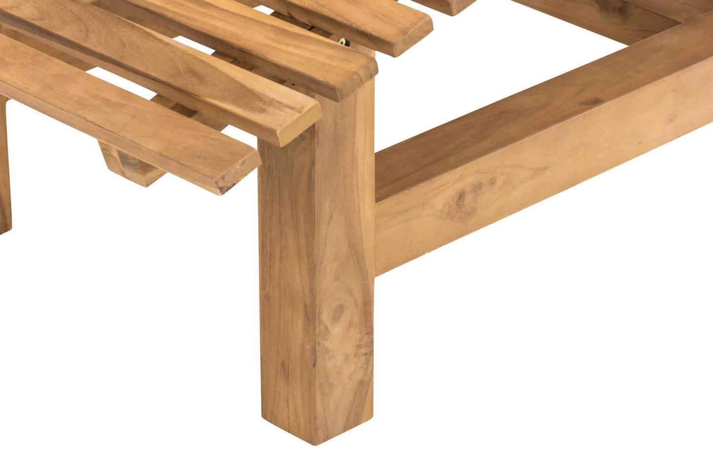 Mit unserem formschönen Sofa können Sie ganz einfach die Seele baumeln lassen. Ein so solides Sofa überzeugt durch seine elegante Optik und wunderbaren Sitzkomfort. Die ergonomische Form sorgt für maximalen Komfort. Die geschwungene Sitz-/Liegefläche und eine erhöhte Fläche für die Beine verleihen der Waldbank optimalen Sitzkomfort. Die stabilen Beine bestehen aus 8 x 8 cm starken Massivholzbohlen. Dank hochwertiger Materialien ist es für den Außenbereich geeignet. Das Edelholz Teak ist ein äußerst hochwertiges und langlebiges Material. Damit die Farbe lange erhalten bleibt, empfehlen sich geeignete Pflegeöle für Teakholz.