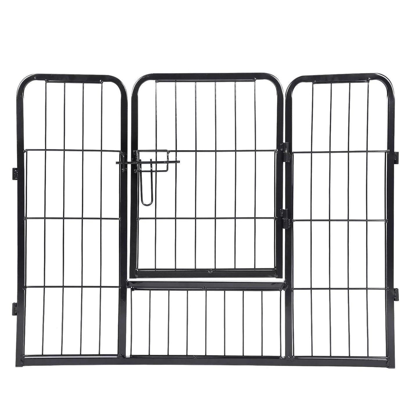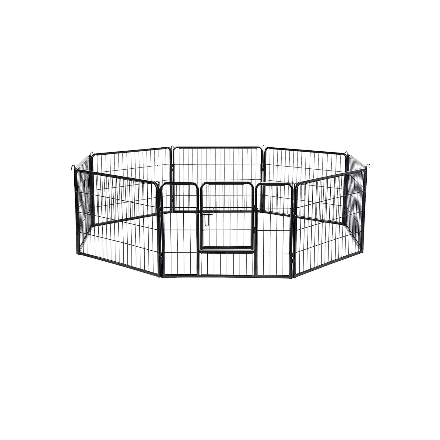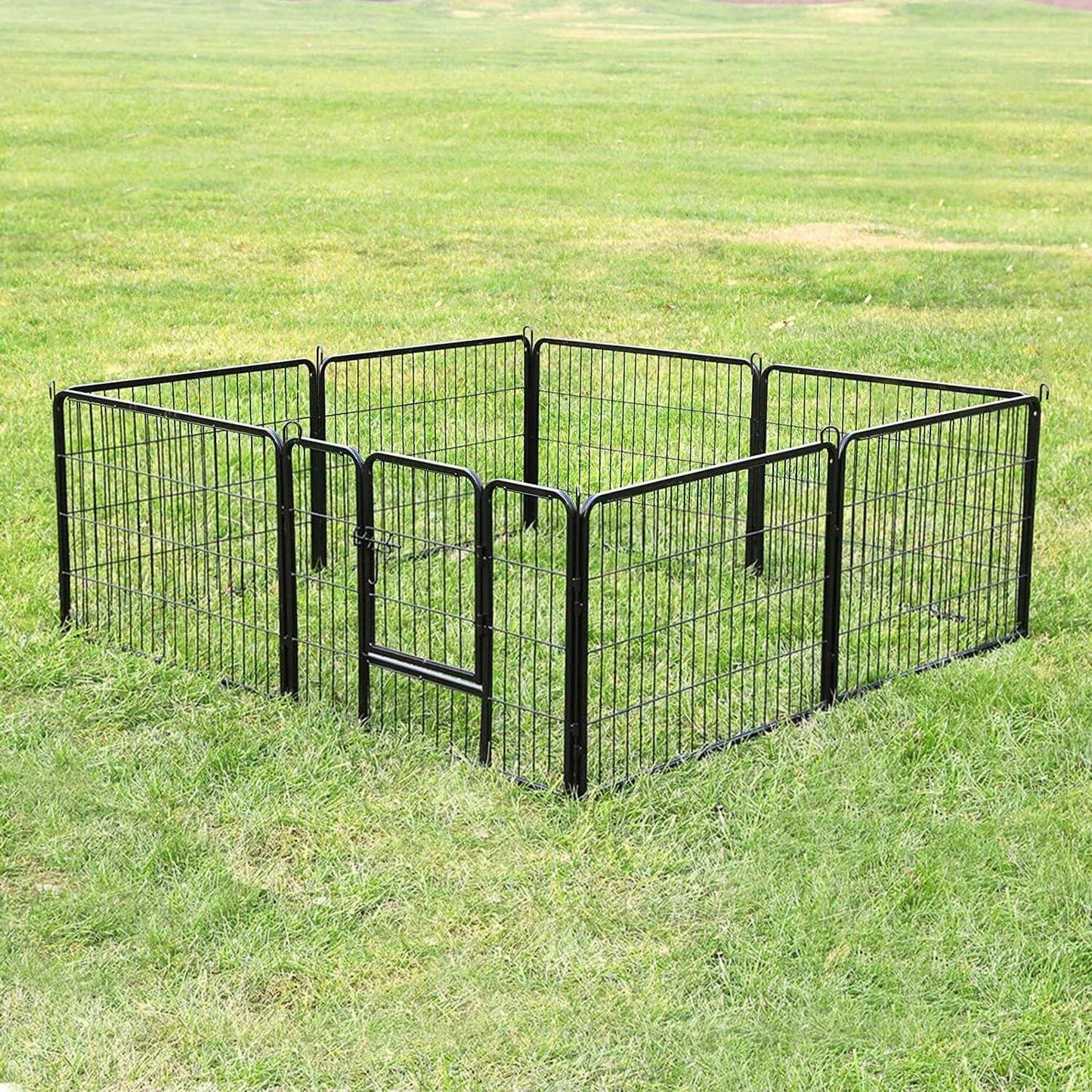 SICHERHEIT: Abgerundete Ecken und Kanten verhindern Verletzungen Ihres Haustiers und Ihrer selbst. PERFEKTES DESIGN: Ausgestattet mit zwei L-förmigen Türriegeln ist dieser Käfig sicher und die Tür kann nicht durch starkes Schütteln geöffnet werden. Ein Ende jeder Eisenstange ist mit Kunststoff beschichtet, um Rost, Schäden am Boden und übermäßige Geräusche beim Bewegen zu verhindern. EINFACHE STRUKTUR: Das Design ermöglicht eine einfache Demontage zur Aufbewahrung, wenn die Box nicht verwendet wird, und die Zaunschienen sind modular, sodass Sie sie in verschiedenen Formen (rechteckig, quadratisch oder achteckig) zusammenbauen können. VIELFÄLTIGE VERWENDUNG: Sie können es zu Hause und im Freien für Ihre Hunde, Kaninchen und andere Kleintiere verwenden.