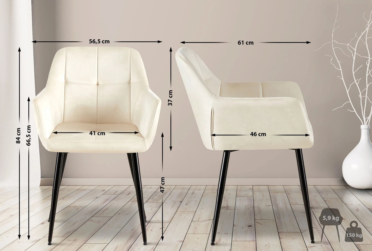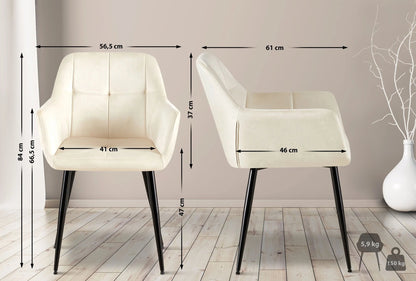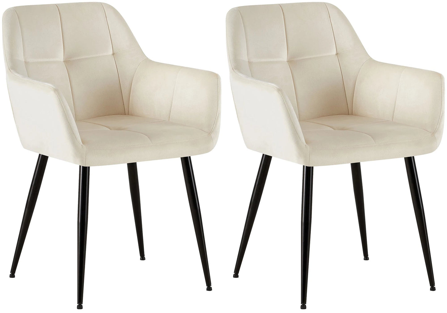 In And OutdoorMatch Esszimmerstuhl Deidra – Creme – 2er-Set – Samt – Hochwertige Polsterung – Luxuriöser Esszimmerstuhl – Moderner Look