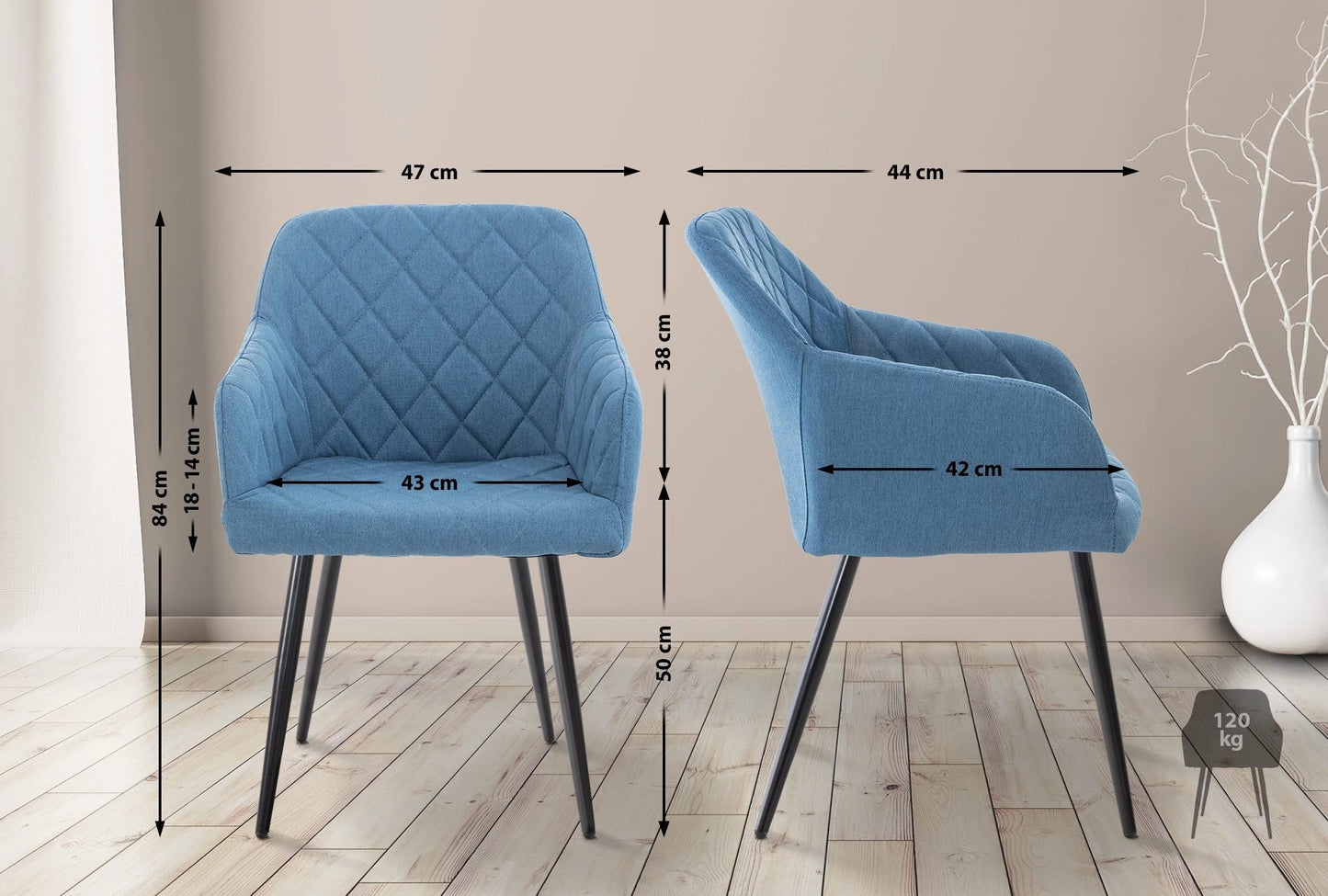 In And OutdoorMatch Esszimmerstuhl Dulce – Blau – 2er-Set – Stoff – Hochwertige Polsterung – Stilvoller Esszimmerstuhl – Moderner Look
