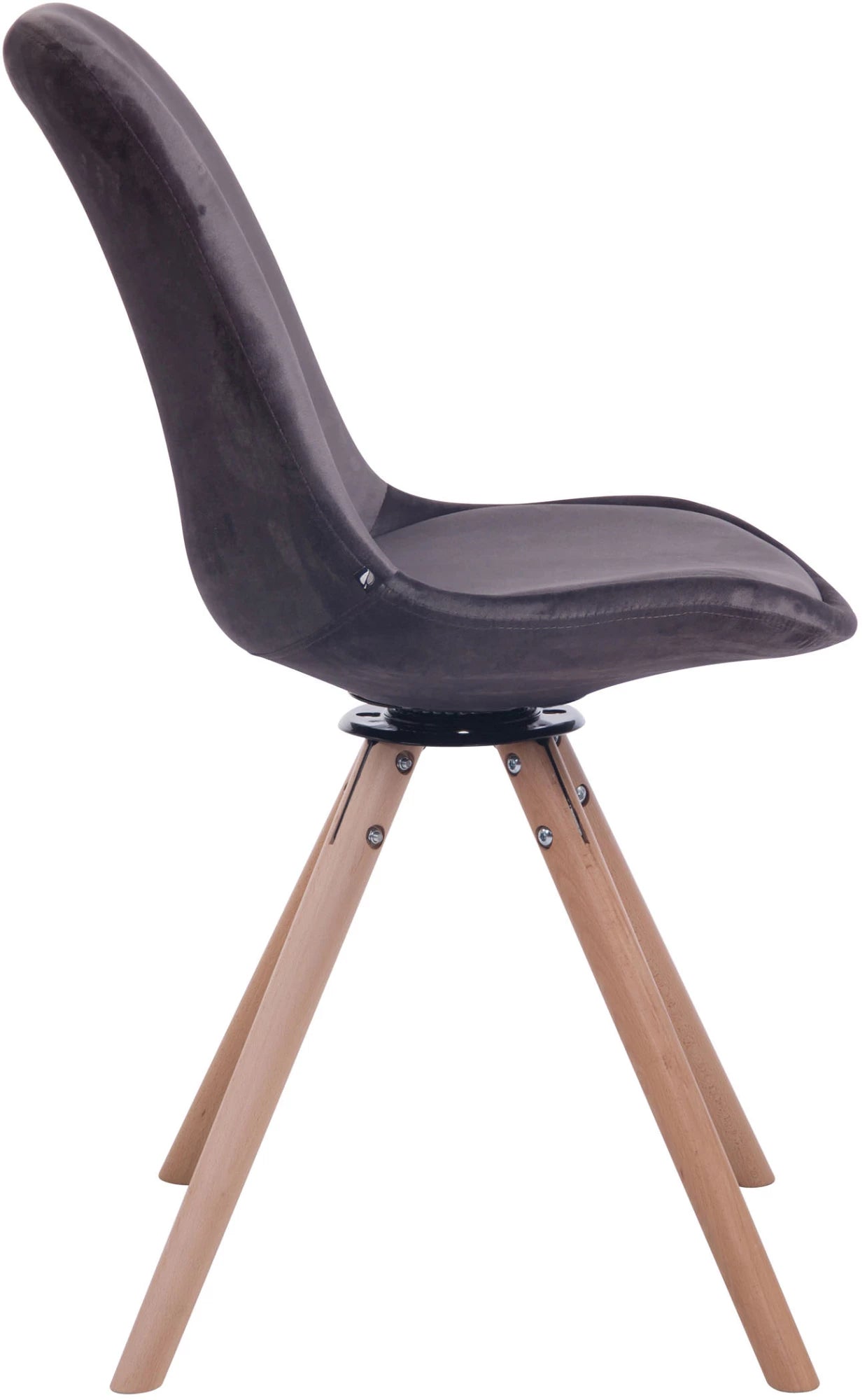 Dieser modische Esszimmerstuhl verleiht jedem Raum einen exklusiven Look. Der bequeme Stuhl überzeugt nicht nur durch seine hervorragenden Sitzeigenschaften, sondern auch durch den spannenden Materialmix aus Samt und Holz. Die Sitzschale ist mit einer pflegeleichten Samtpolsterung bezogen und eine gepolsterte Sitzfläche sorgt zudem für ein angenehmes Sitzgefühl, auch nach längerem Sitzen. Auf dem drehbaren 12-Fuß-Untergestell aus Buche oder Eiche macht dieser Esszimmerstuhl bei jeder Gelegenheit eine gute Figur und ist von jeder Seite schnell einsetzbar.